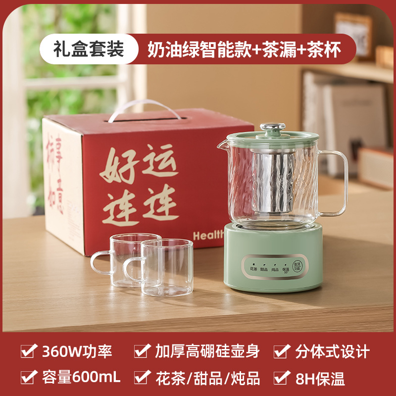 HE299 саржа-0,6л-молочно-зеленый-умный одинарный горшок + фильтр + 2 чашки + подставка