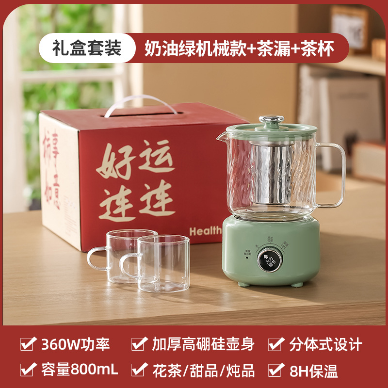 HE299 саржа-0,8л-молочно-зеленый-умный одинарный горшок + фильтр + 2 чашки + подставка
