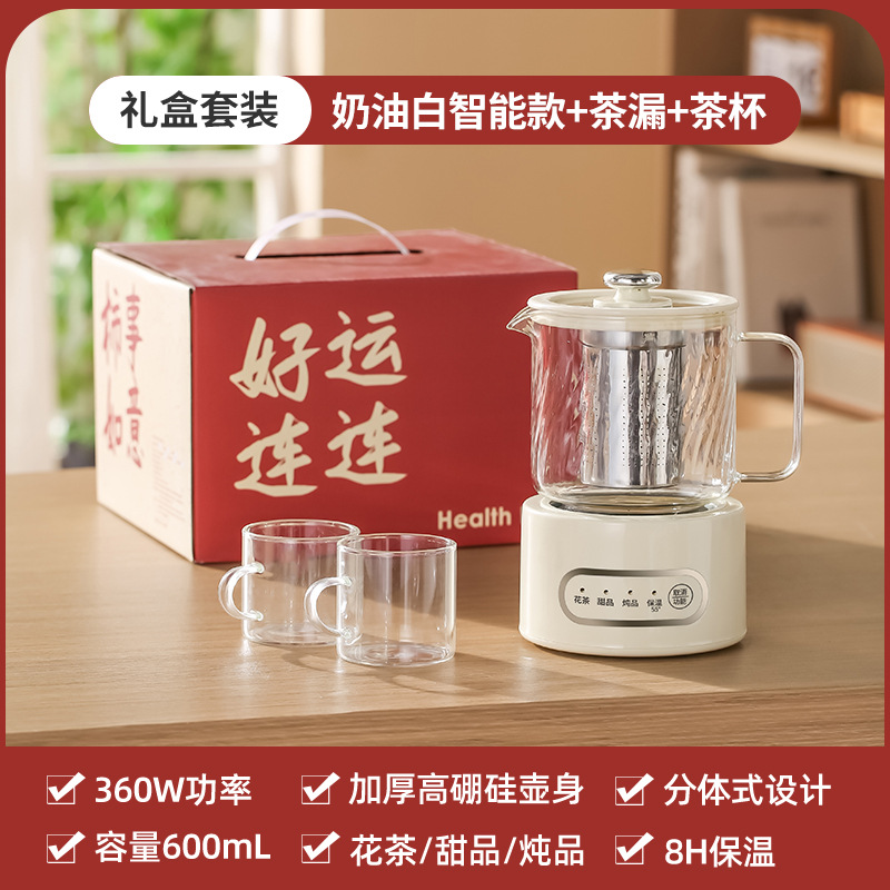 HE299 саржа-0,6л-молочно-белый-умный одинарный горшок+фильтр+2 чашки+основа