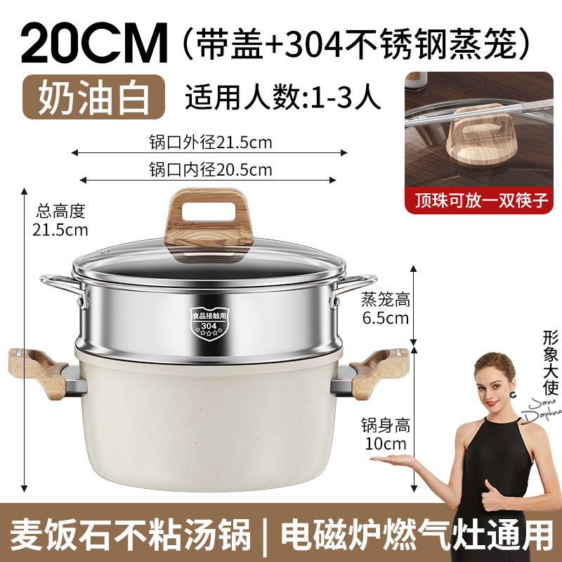 Кастрюля для супа медицинского камня с антипригарным покрытием 20см (с крышкой + пароваркой)