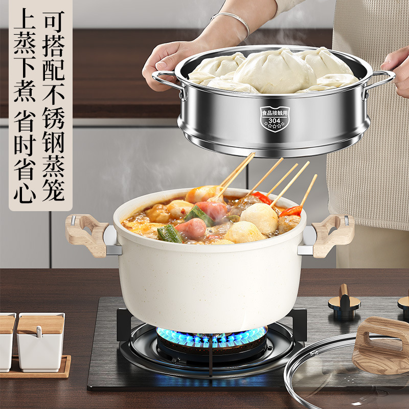 Кастрюля для супа медицинского камня с антипригарным покрытием 22см (с крышкой + пароваркой)