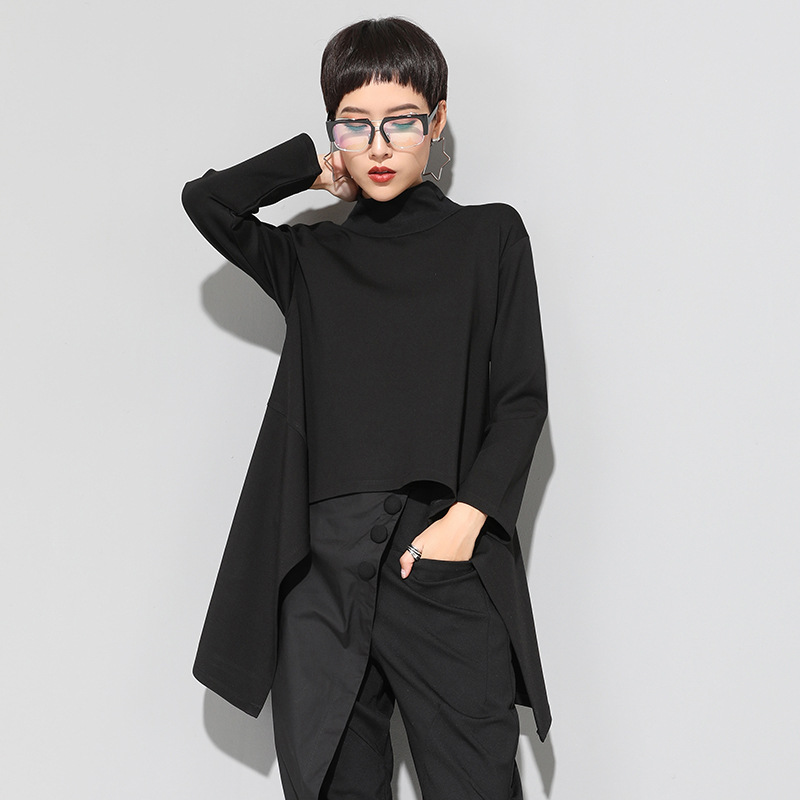 Главная страница > Real Shot, Европейская и американская модная Женская осенне-зимняя новая Базовая рубашка, верхняя одежда, футболка, универсальная приталенная передняя короткая спина, Длинный топ