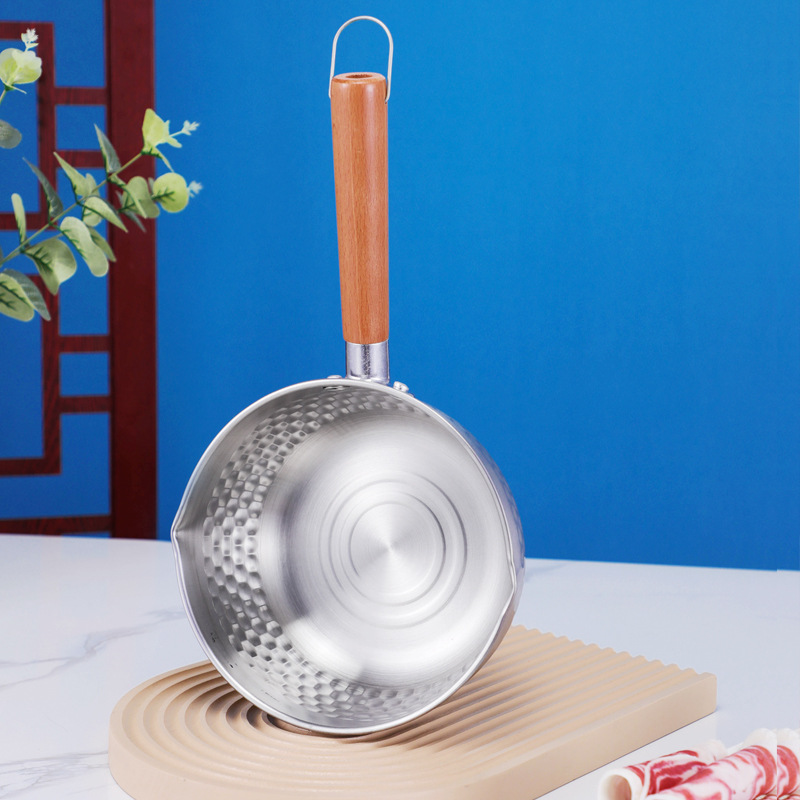 Снежный плоский горшок из нержавеющей стали в японском стиле, бытовой небольшой горшок для супа, утолщенный деревянный горшок с одной ручкой, горшок с плоским дном, многоцелевой горшок для лапши быстрого приготовления