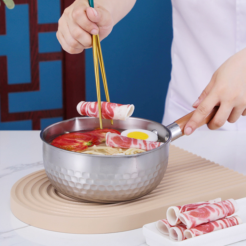 Главная страница > Снежный плоский горшок из нержавеющей стали в японском стиле, бытовой небольшой горшок для супа, утолщенный деревянный горшок с одной ручкой, горшок с плоским дном, многоцелевой горшок для лапши быстрого приготовления