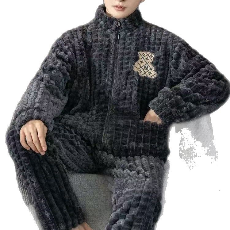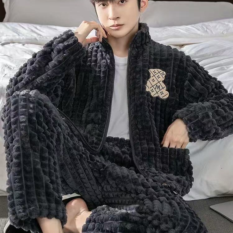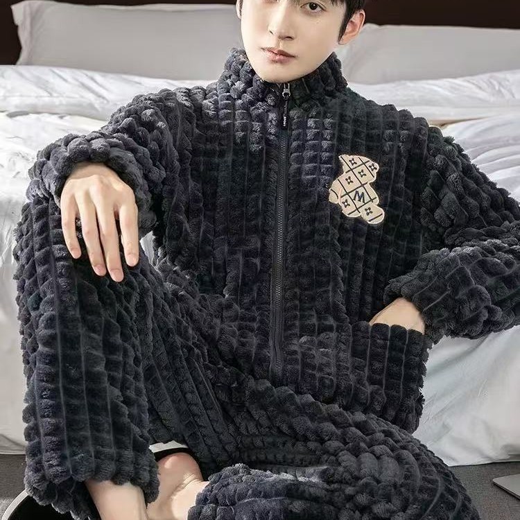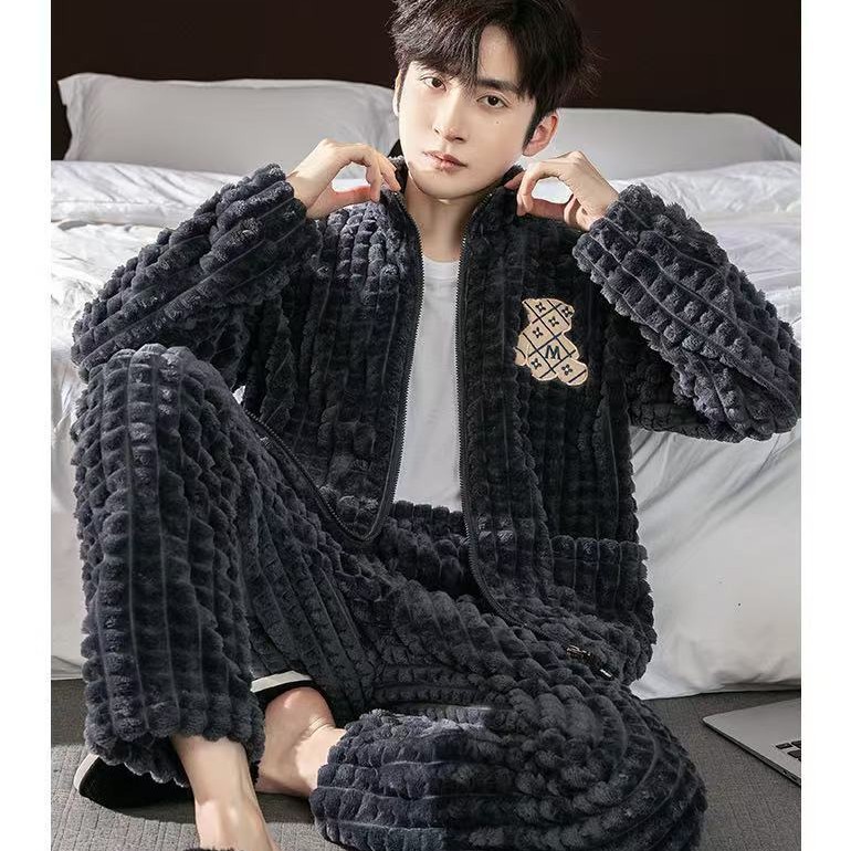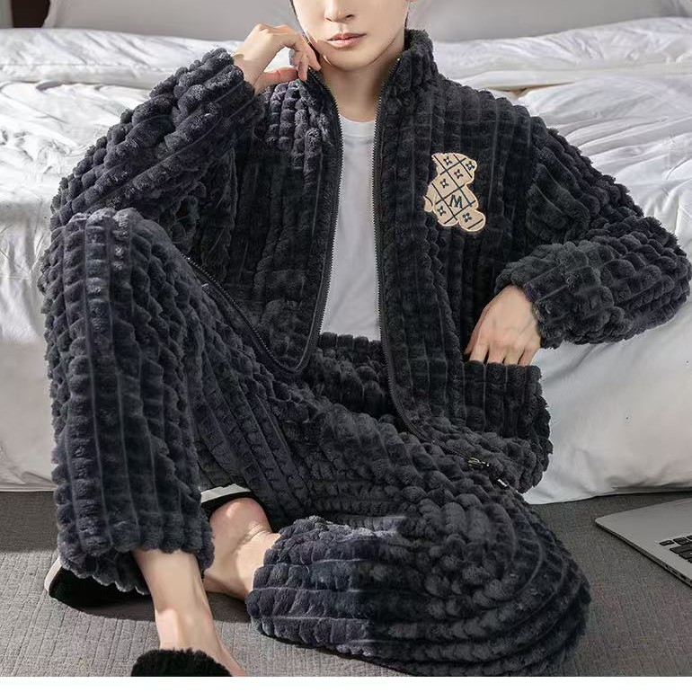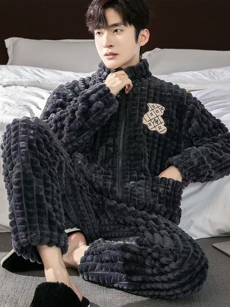 Главная страница > Осенне-зимние мужские пижамы на флисовой подкладке и утолщенный теплый воротник-стойка на молнии можно носить вне дома, комплект домашней одежды, коралловый бархат, удобный