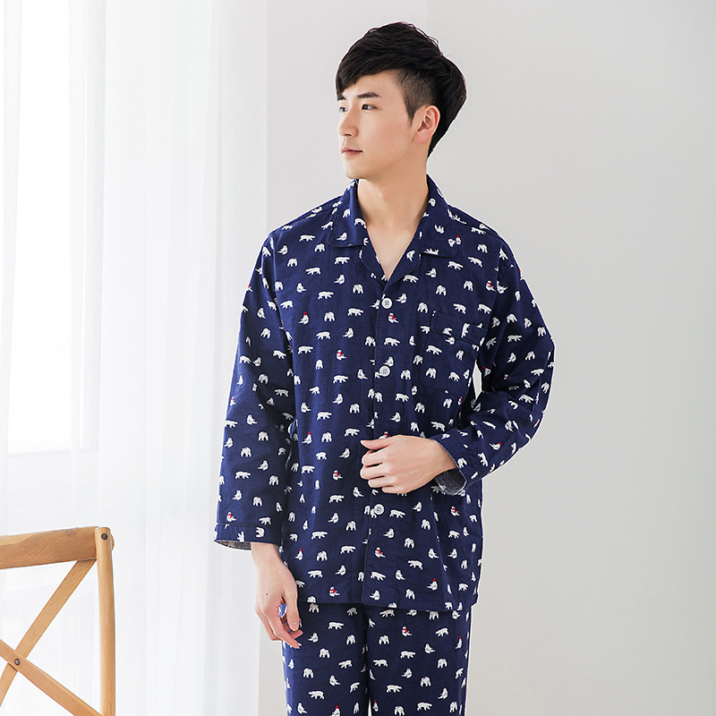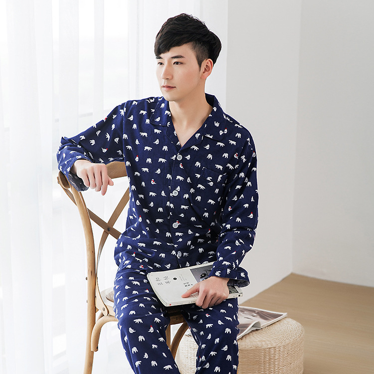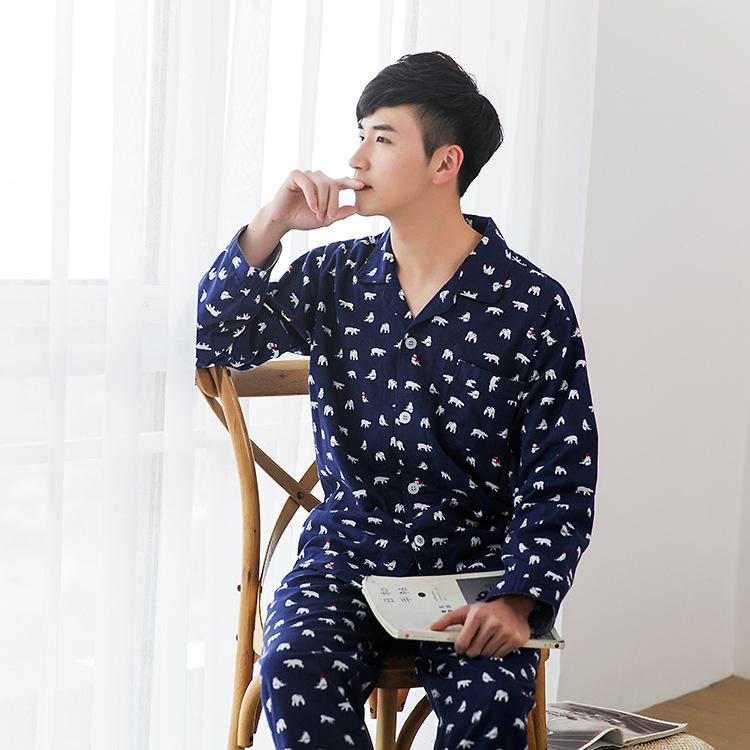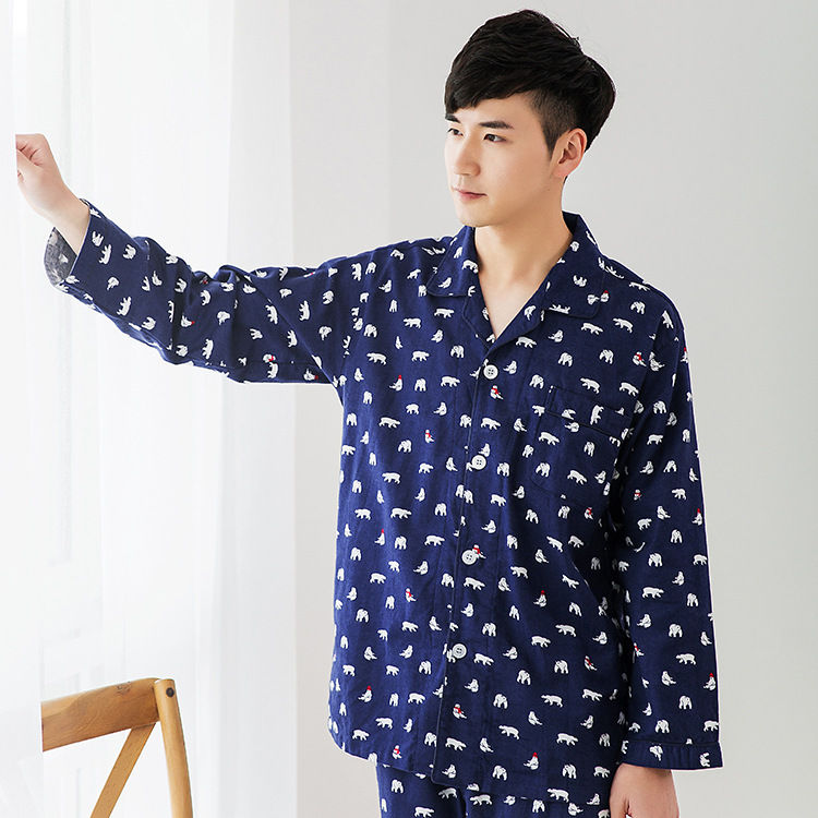 Главная страница > Мужская весна и осень новая шерстяная ткань пижамы с длинными рукавами брюки домашний костюм синий медведь мультфильм хлопок