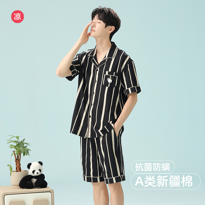 [Cool Feeling] Летние пижамы класса А, мужской костюм из чистого хлопка, мужская полосатая домашняя одежда, высококачественная одежда, которую можно носить на открытом воздухе