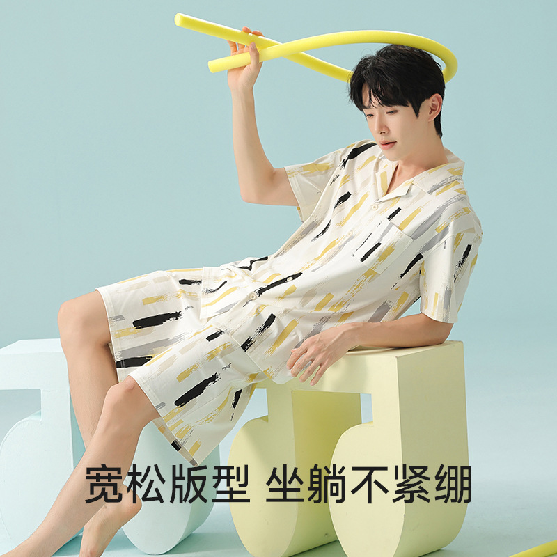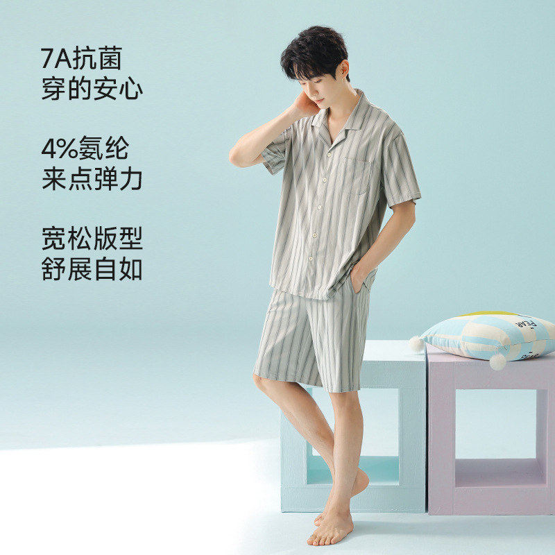 Главная страница > [Cool Feeling] Летние пижамы класса А, мужской костюм из чистого хлопка, мужская полосатая домашняя одежда, высококачественная одежда, которую можно носить на открытом воздухе