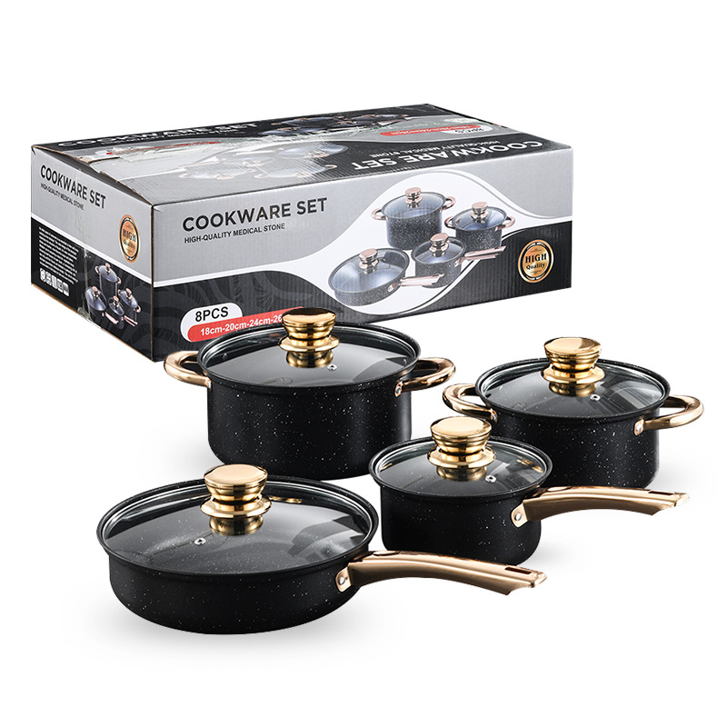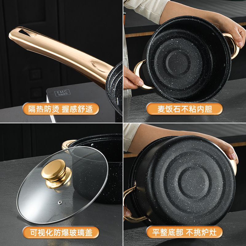 Chuangfa Трансграничная очень толстая пшеничная каменная кастрюля набор оптовая золотая ручка антипригарная кастрюля