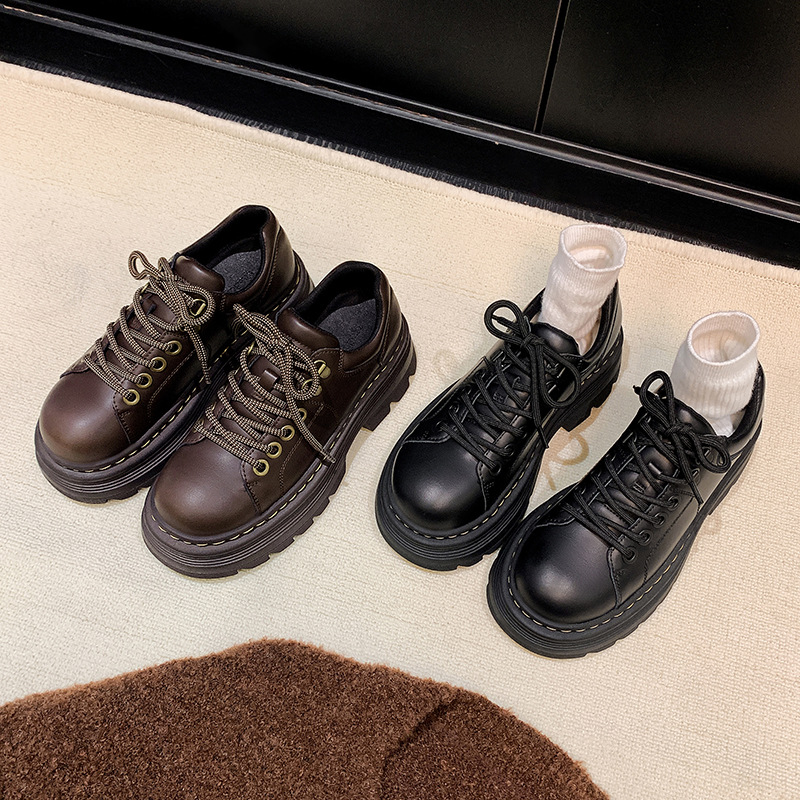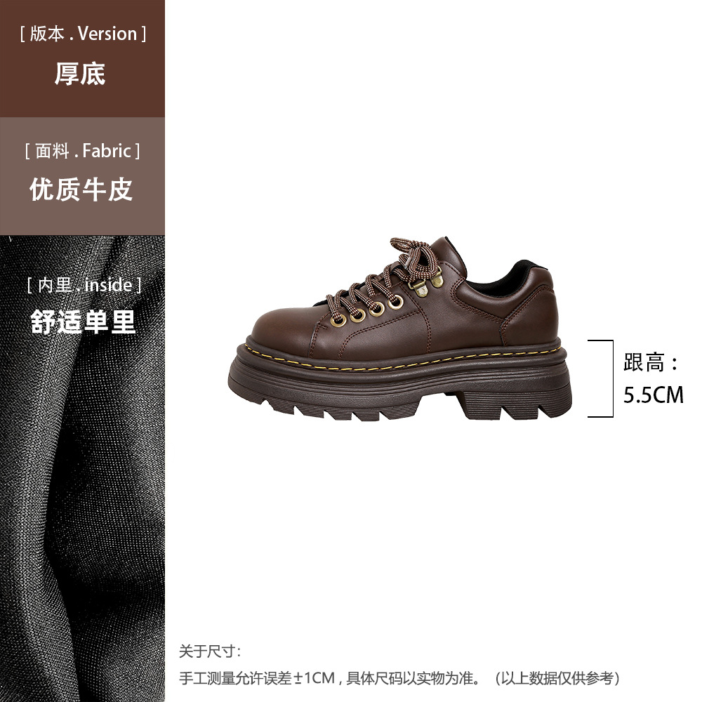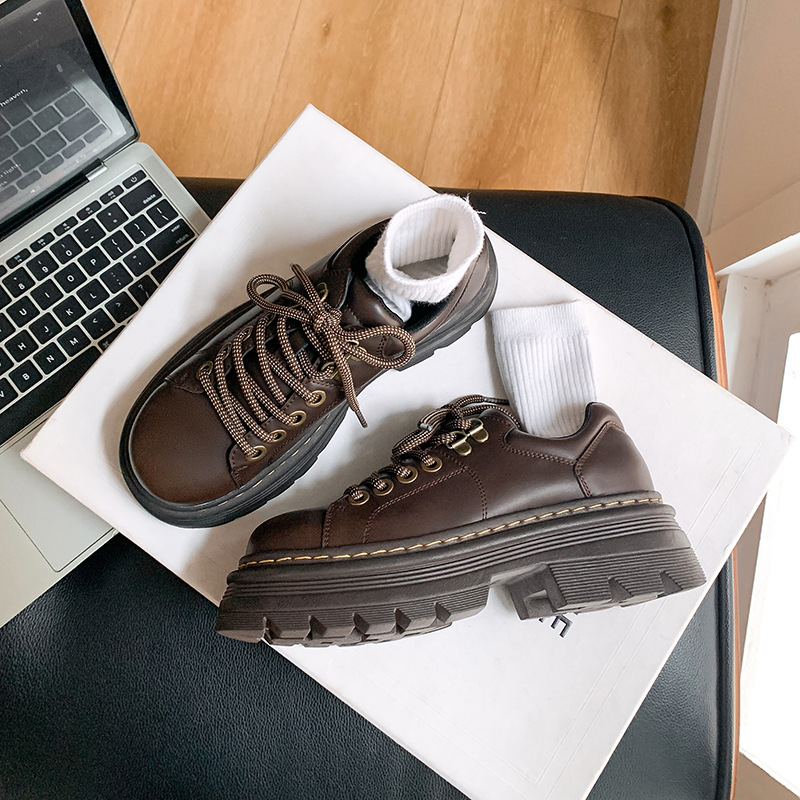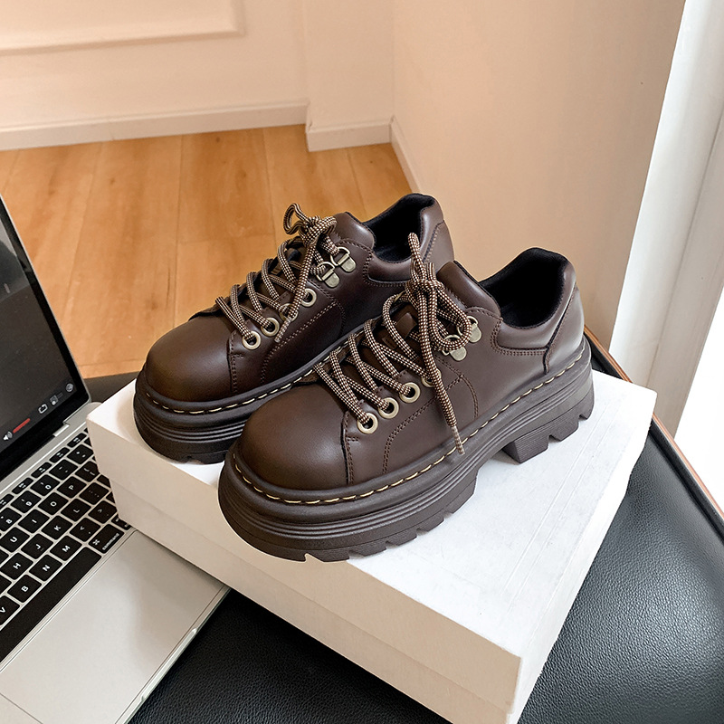 Главная страница > Женские кожаные туфли на шнуровке в британском стиле, увеличивающие рост, на флисовой подкладке, коричневые лоферы на толстой подошве в студенческом стиле.