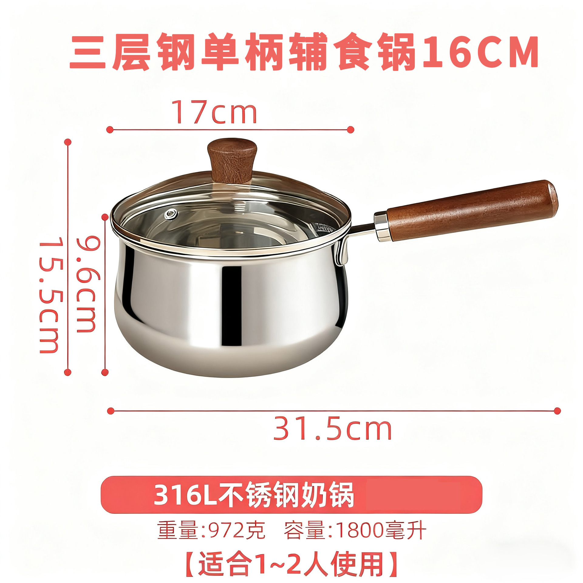 16-сантиметровая кастрюля с одной ручкой [трехслойная нержавеющая сталь 316]