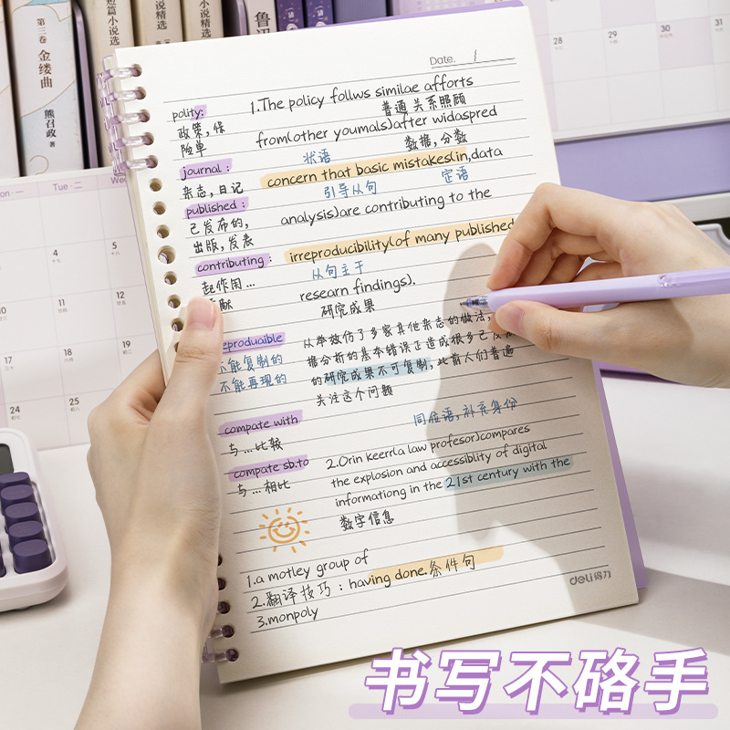 Главная страница > Тетрадь Deli на кольцах формата B5, тетрадь на кольцах Morandi, удобная для держания, съемная тетрадь на спирали формата A5 для учащихся средней школы.