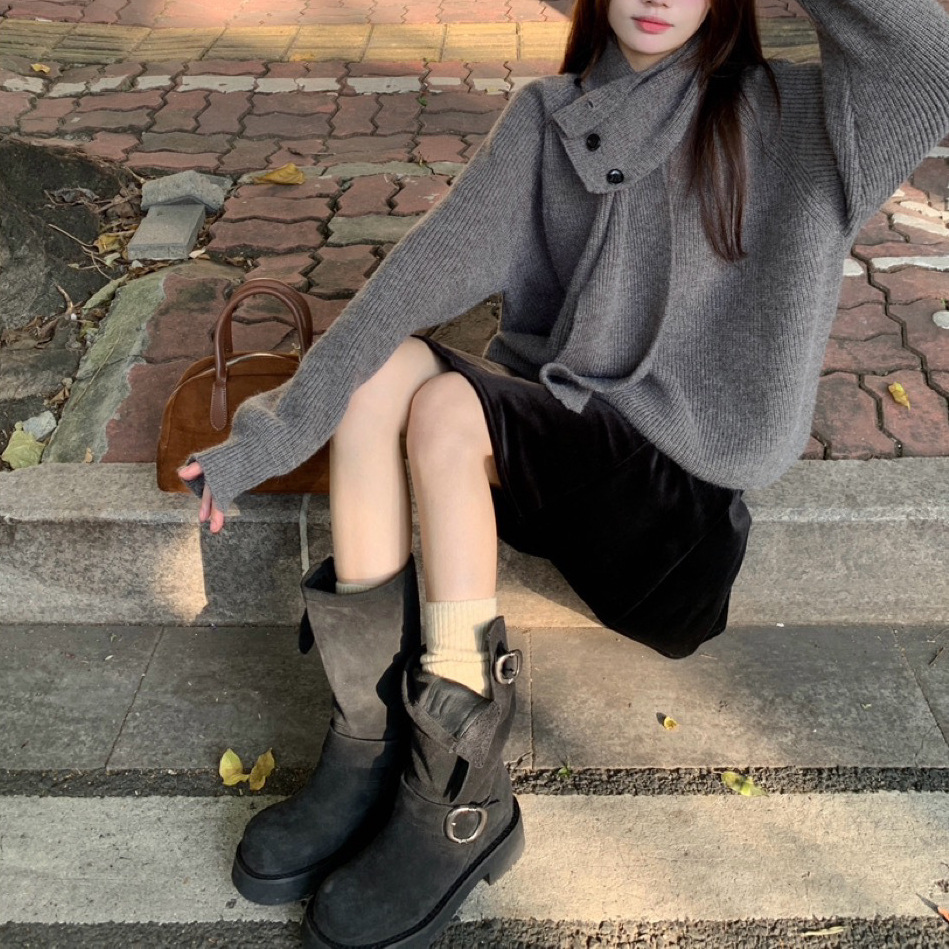 Главная страница > Корейская мода свободный дикий свитер женский осень-зима 2025 новый красный съемный шарф свитер