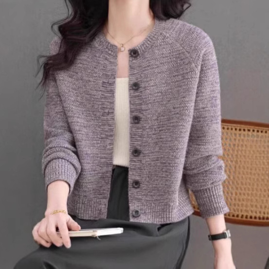 Главная страница > 2025 осень/зима, новый женский свитер из цветочной пряжи, вязаный кардиган, женский модный жакет с круглым вырезом и высокой талией, топ.