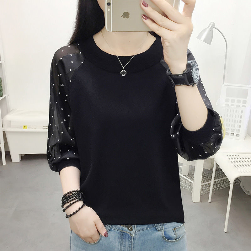 Главная страница > Модная женская футболка весна 2025, новая весенне-летняя стильная базовая рубашка, женский трикотажный шифоновый топ с рукавом три четверти