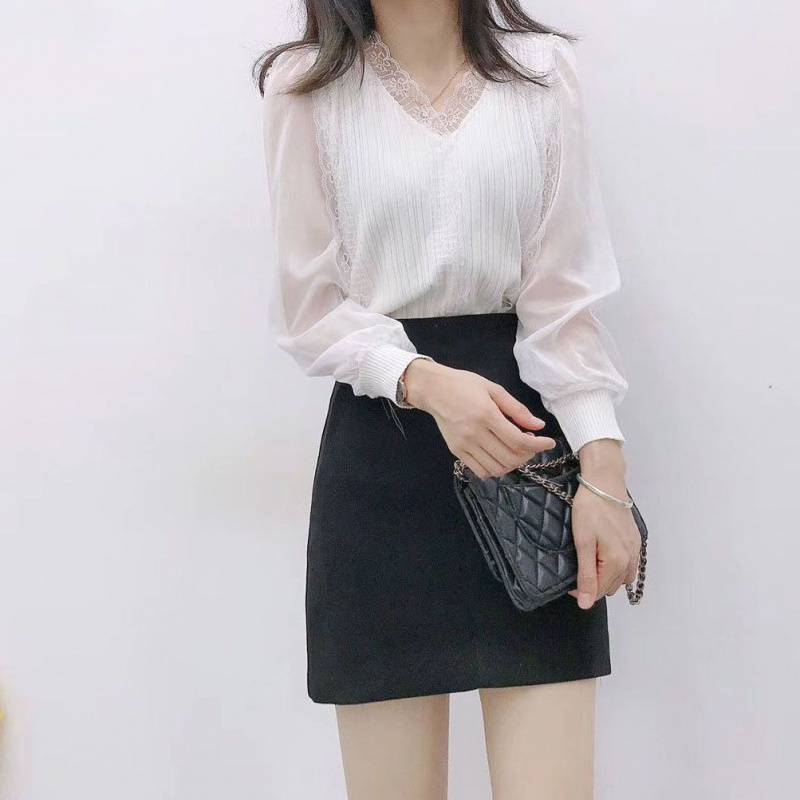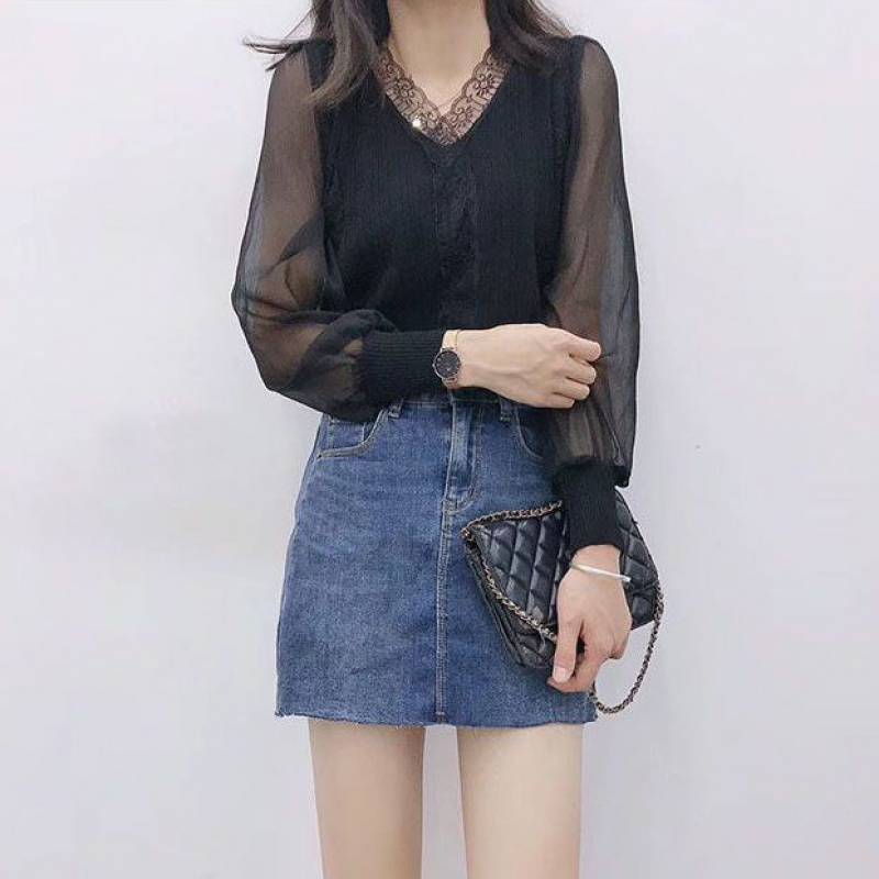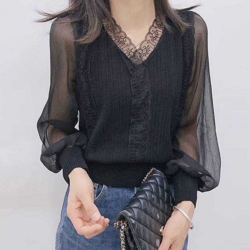 Главная страница > Новая осенняя женская универсальная базовая рубашка 2025 года с длинным рукавом, V-образным вырезом, из кружева, шифона и трикотажа, стильная верхняя одежда