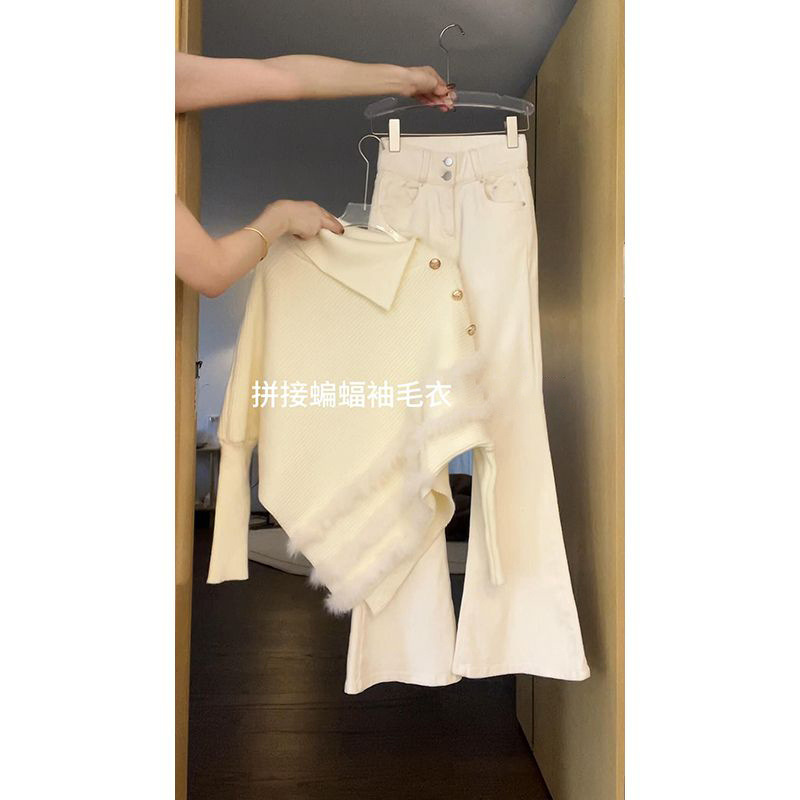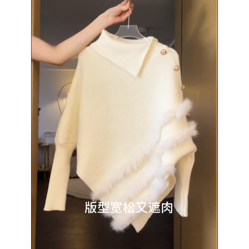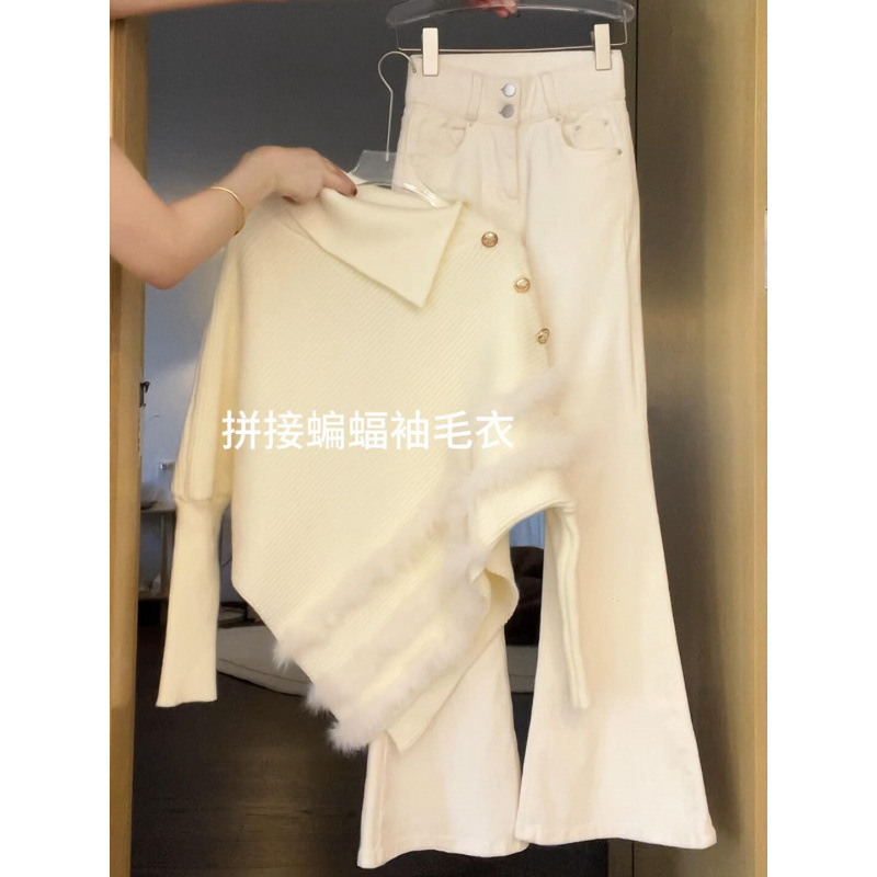 Главная страница > Белый рукав летучей мыши, сшитый нерегулярный отворот, дизайн, вязаный свитер женский