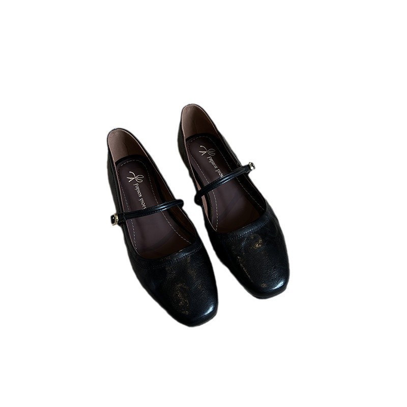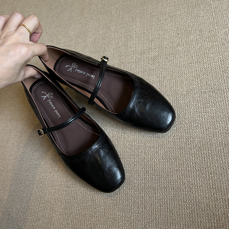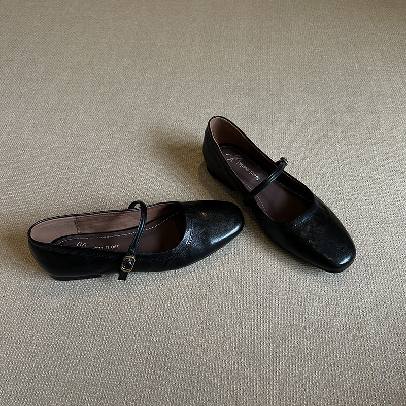 Главная страница > Нишевые продвинутые туфли Мэри Джейн женские кожаные плоские каблуки с пряжкой и неглубокими туфлями ретро квадратные туфли на плоской подошве