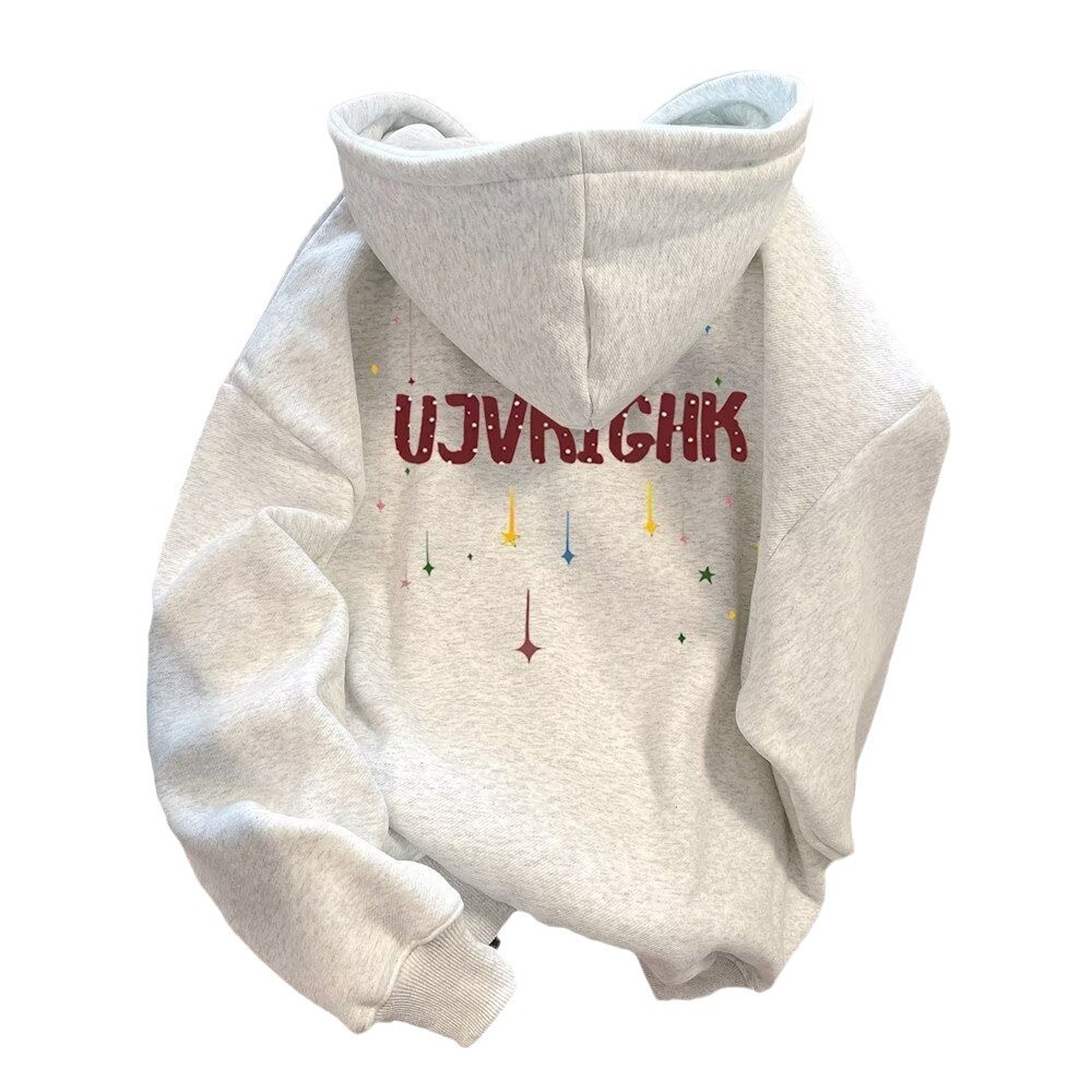 Американский ретро серый свитер с капюшоном женский осень-зима новый свободный дизайн oversize пара топ толстовка с капюшоном