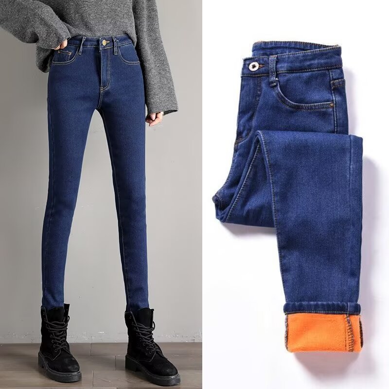 Главная страница > Плюшевая утолщение теплые джинсы женский 2024 высокая талия плотный темперамент ленивый тренд осенние застежки на молнии