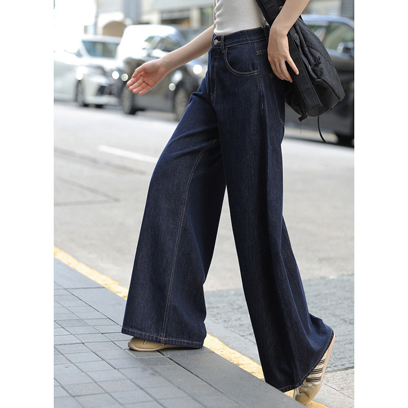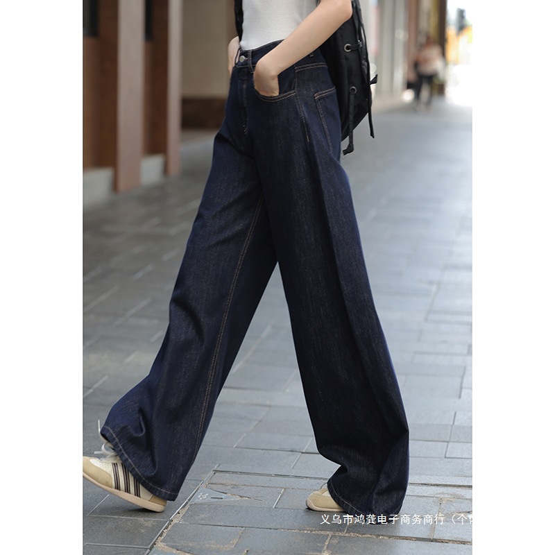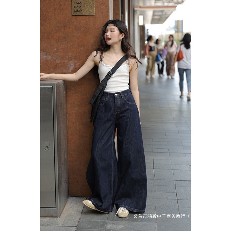 Главная страница > Женские темно-синие джинсы с высокой талией, прямые широкие брюки, новинка весны 2025 года, американский стиль