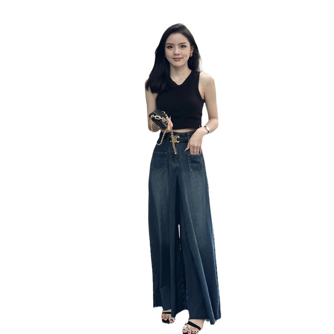 Главная страница > Модная юбка с широкими ногами Супер широкая сосновая талия джинсовая широкая брюки женские брюки с полуюбкой дизайн нишевые брюки