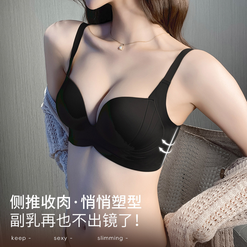 Скидка 40 юаней, сексуальное нижнее белье с круглой чашкой для женщин с маленькой грудью, пуш-ап и увеличение, утолщенный, утягивающий грудь, непровисающий бесшовный бюстгальтер