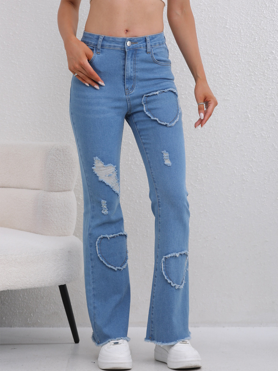Главная страница > Джинсы в европейском и американском стиле с эластичным узором в виде сердца, рваные расклешенные брюки, повседневные длинные брюки WOMENJEANS с вышивкой
