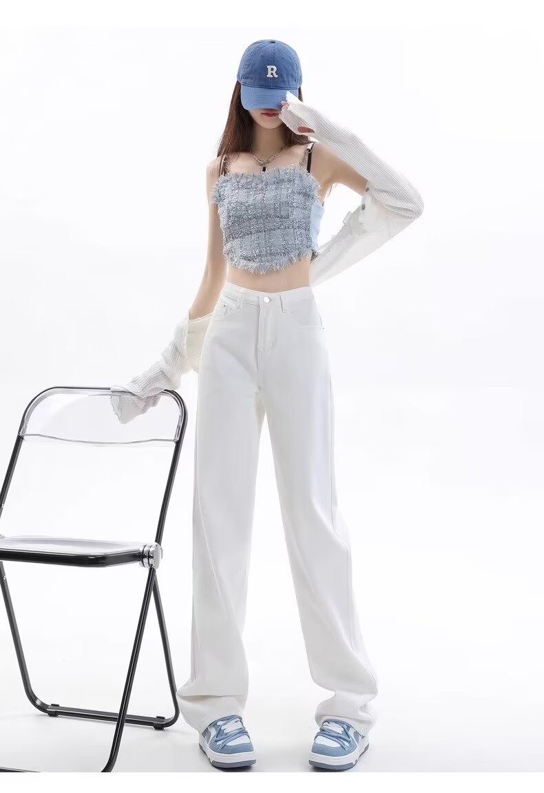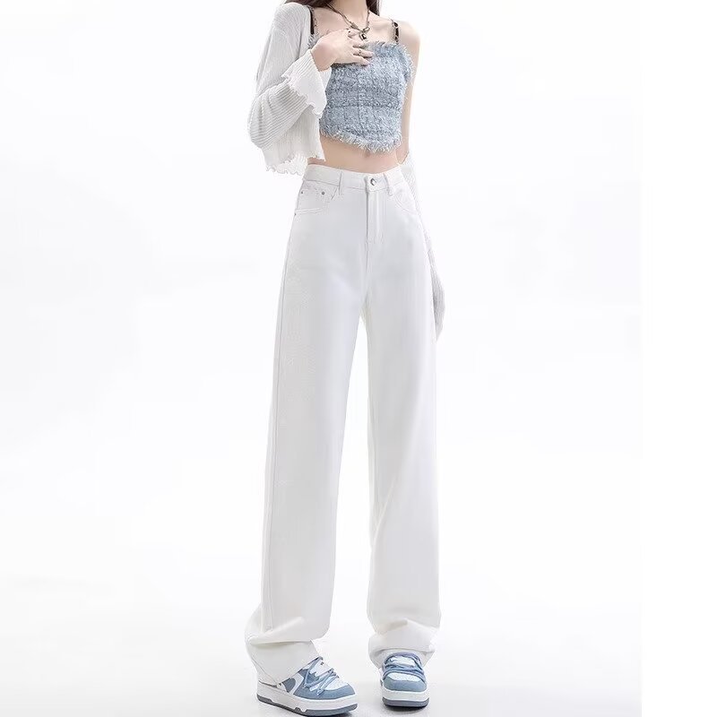 Главная страница > Модные летние 2025 года светлые прямые джинсы для женщин, свободные и драпированные, высокие, удлиненные широкие брюки в пол.