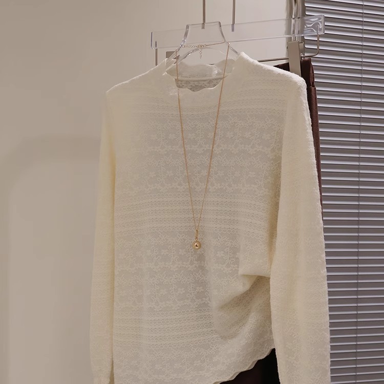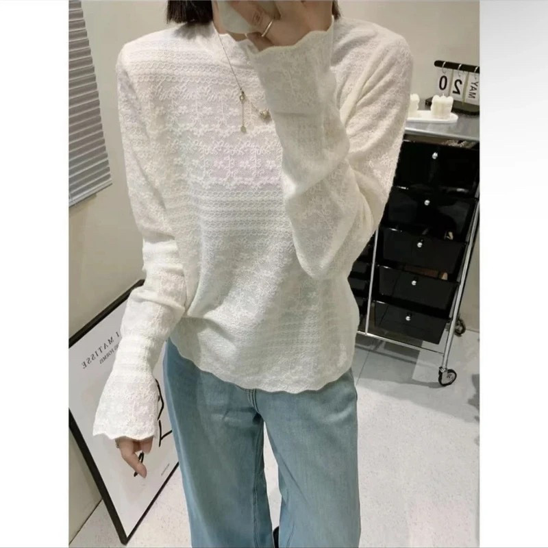 Главная страница > Элегантный трикотаж с круглым вырезом и кружевной отделкой, тонкий однотонный базовый топ для многослойных образов, новинка зимы 2025.