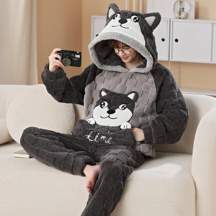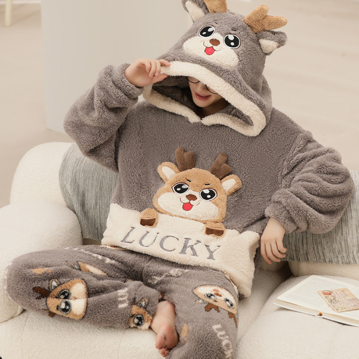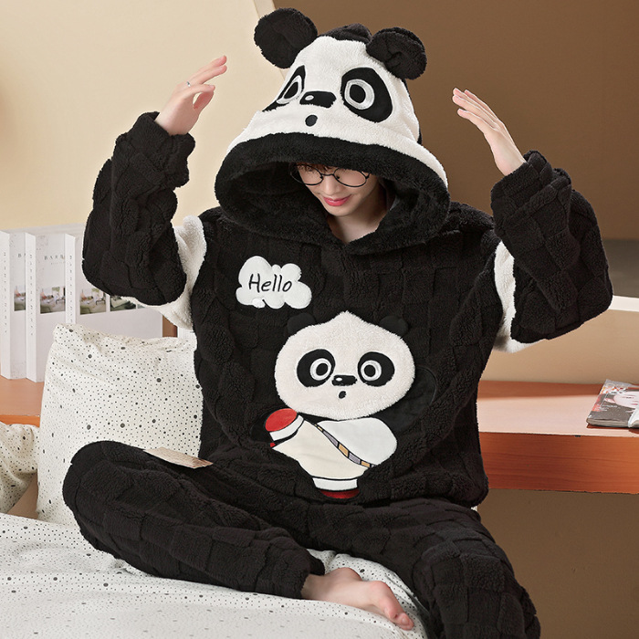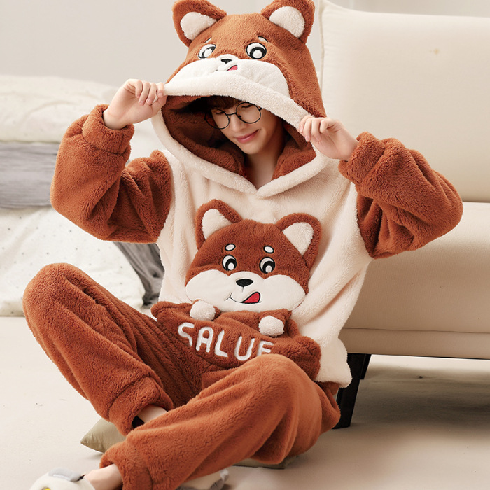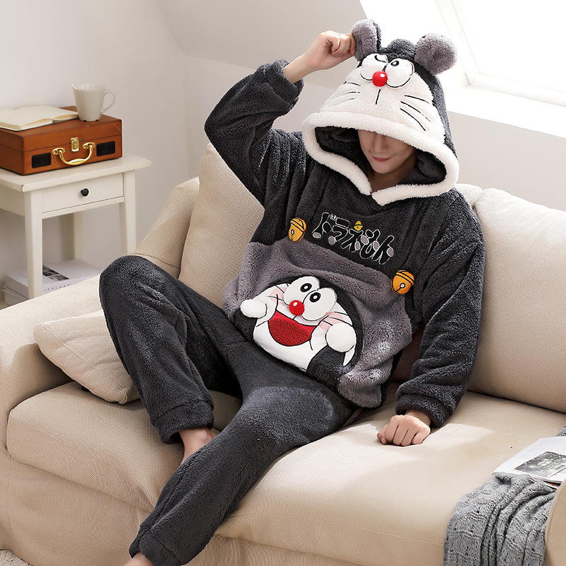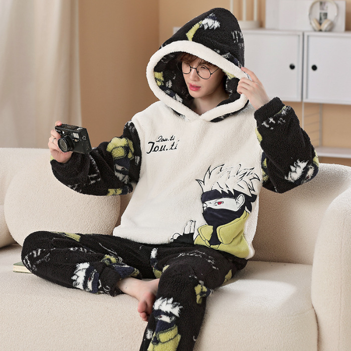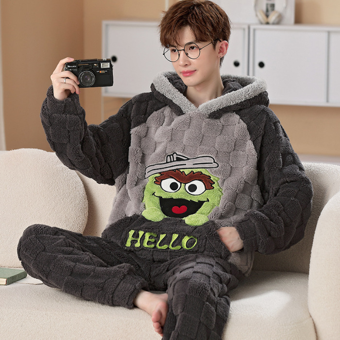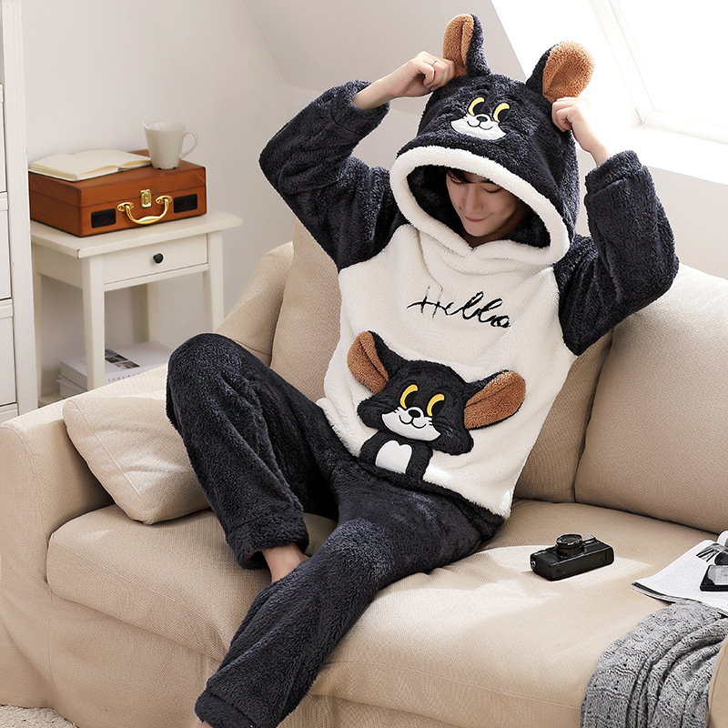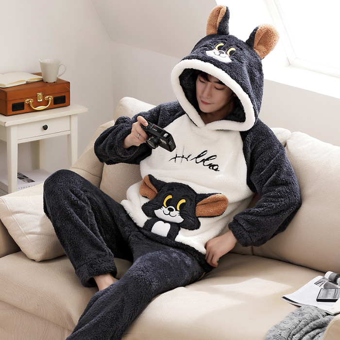 Главная страница > Плюшевая Пижама мужская с длинными рукавами осенне-зимний утолщенный теплый коралловый флис с мультяшным капюшоном зимний Молодежный костюм