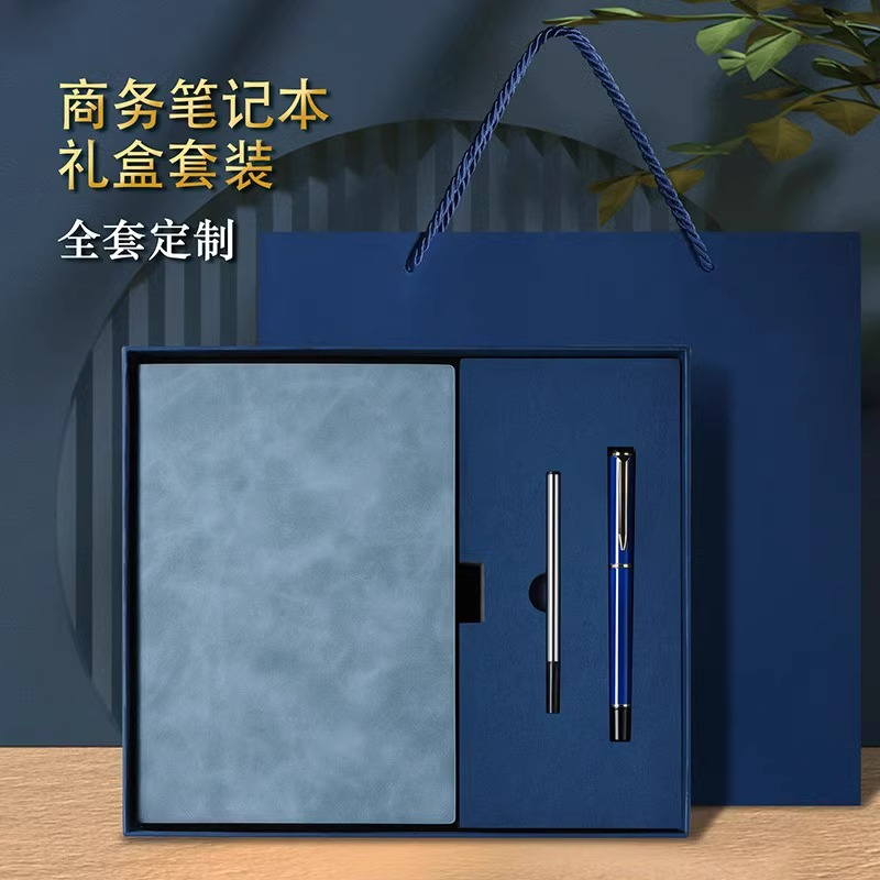- Темно-синяя мягкая кожа А5 + золотая коробка + металлическая ручка (подарочный пакет) [односторонняя передняя часть]