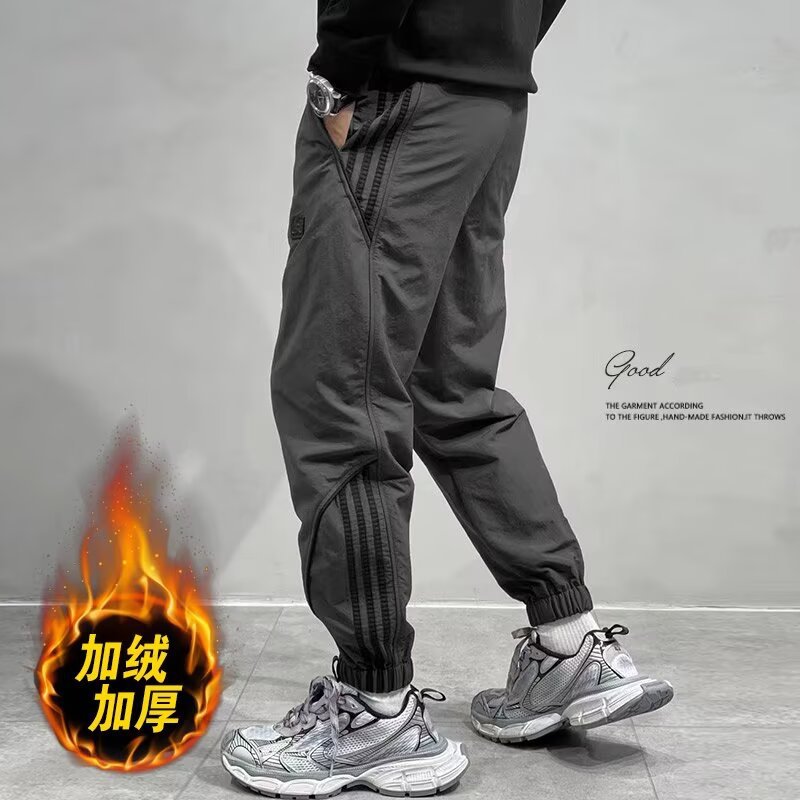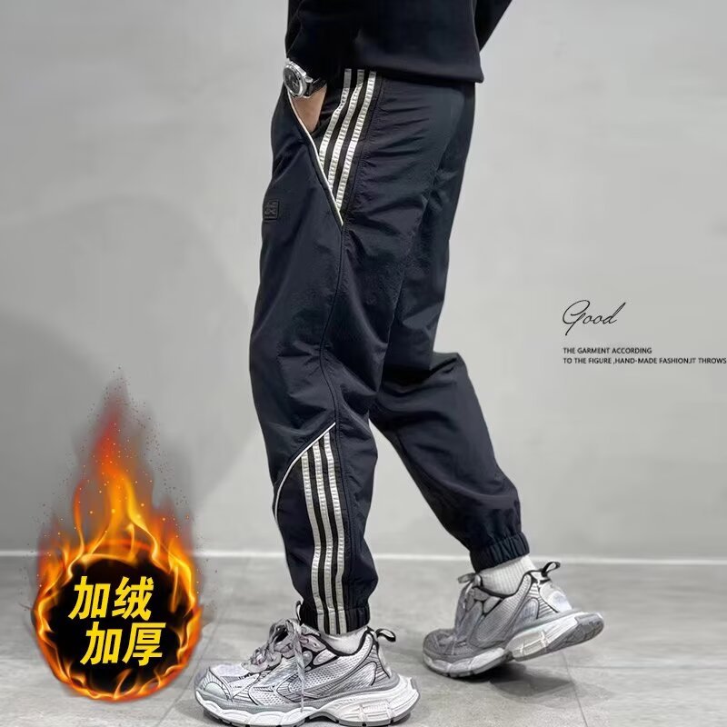 Осенние и зимние спортивные брюки мужские полосатые штурмовые брюки свободные большие размеры повседневные девять очков Harlen дикие бархатные брюки