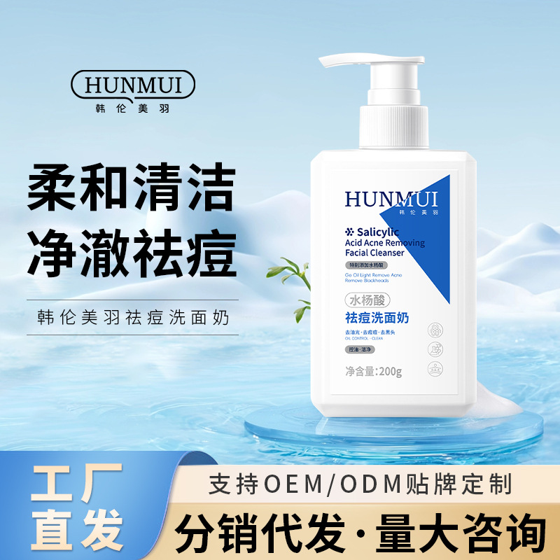 Очищающее средство для лица против прыщей Han Lun Meiyu, мягкое глубокое очищение, контроль жирности, удаление следов прыщей, тонкие поры, очищающее средство для лица с салициловой кислотой
