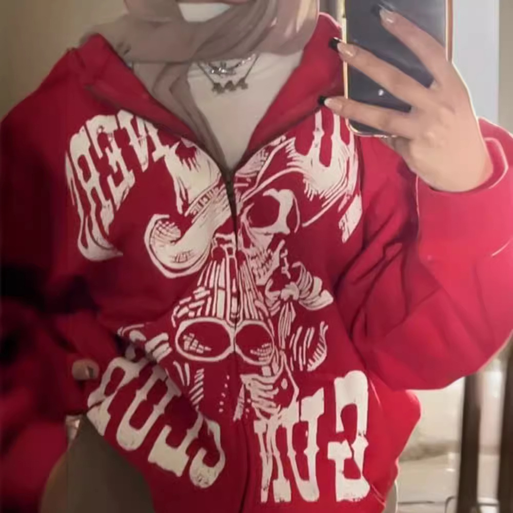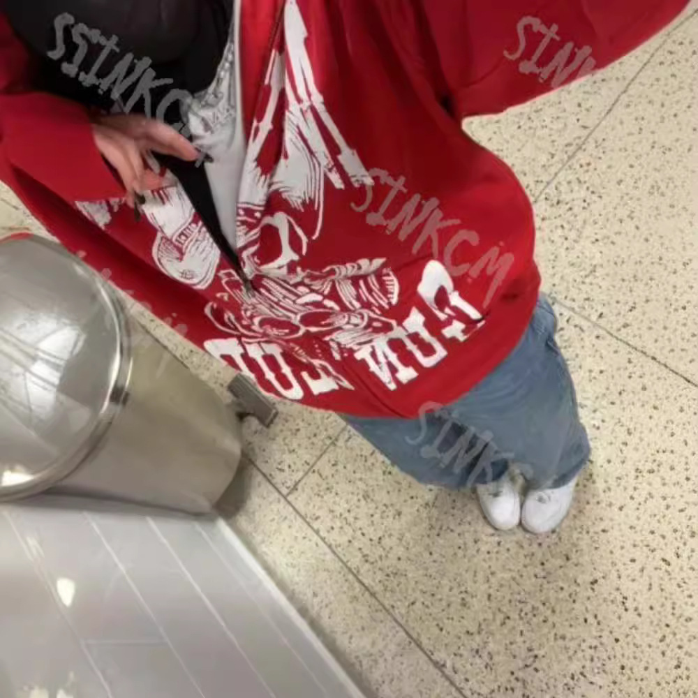 Главная страница > Новая женская красная толстовка 2024 года с 3D-печатью, спортивная повседневная куртка на молнии в стиле Y2K для пар