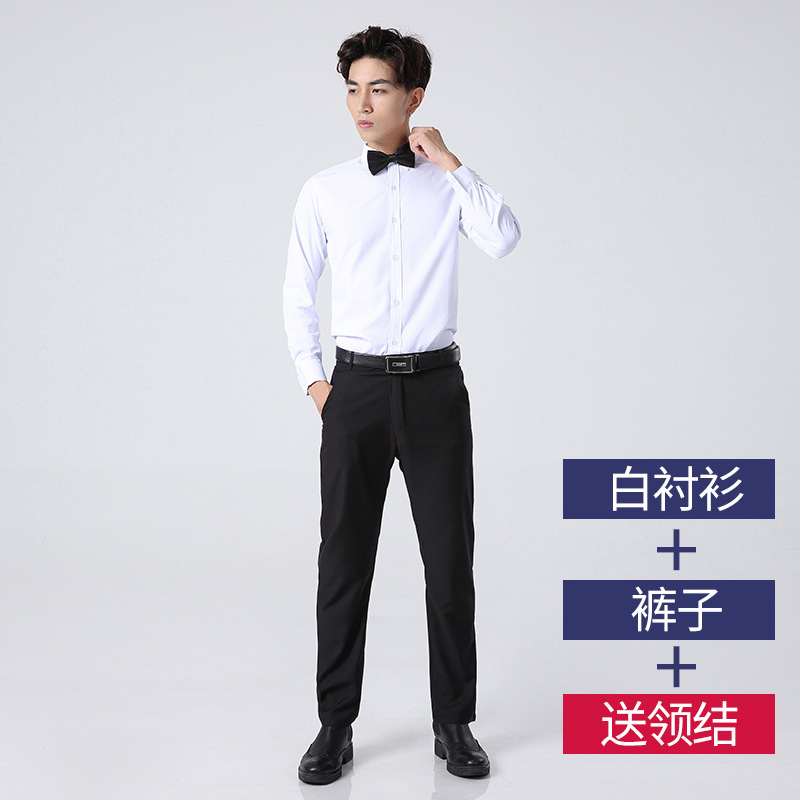 Белая рубашка с длинными рукавами + черные брюки с бесплатным галстуком-бабочкой.