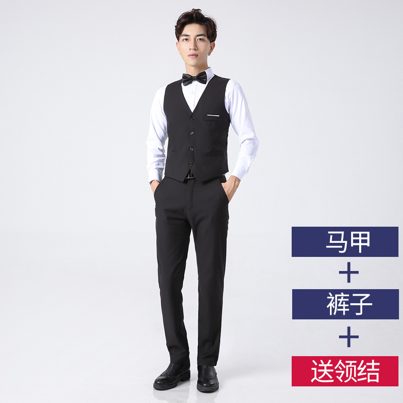 Черный костюм + жилет + брюки + белая рубашка и бесплатный галстук-бабочка.