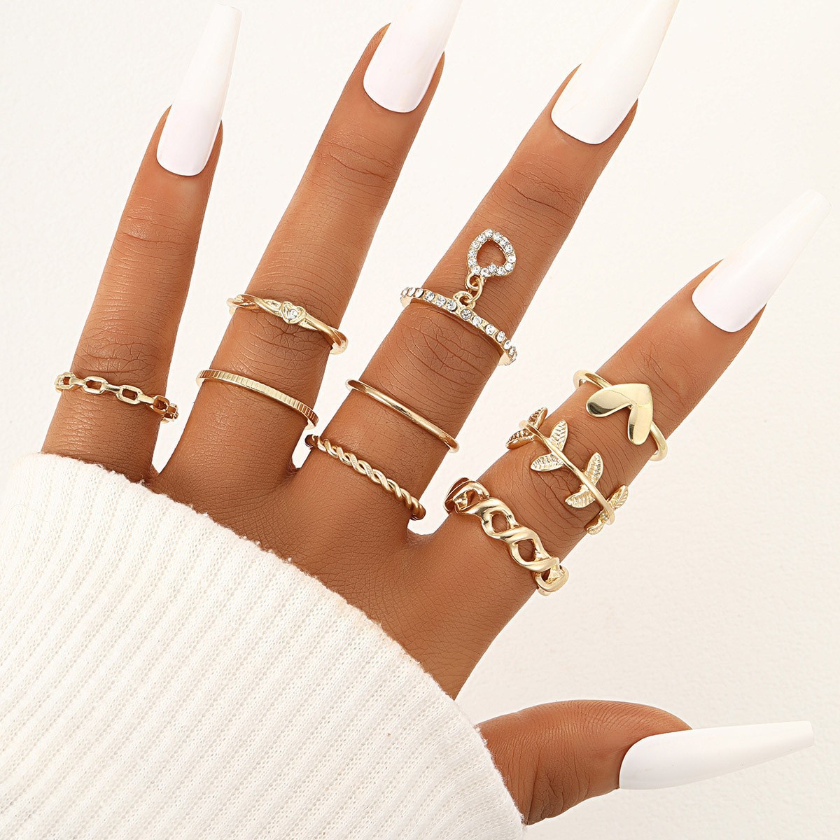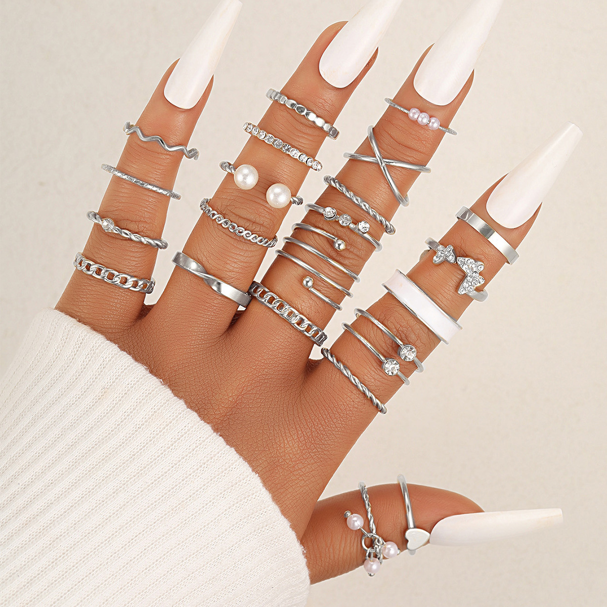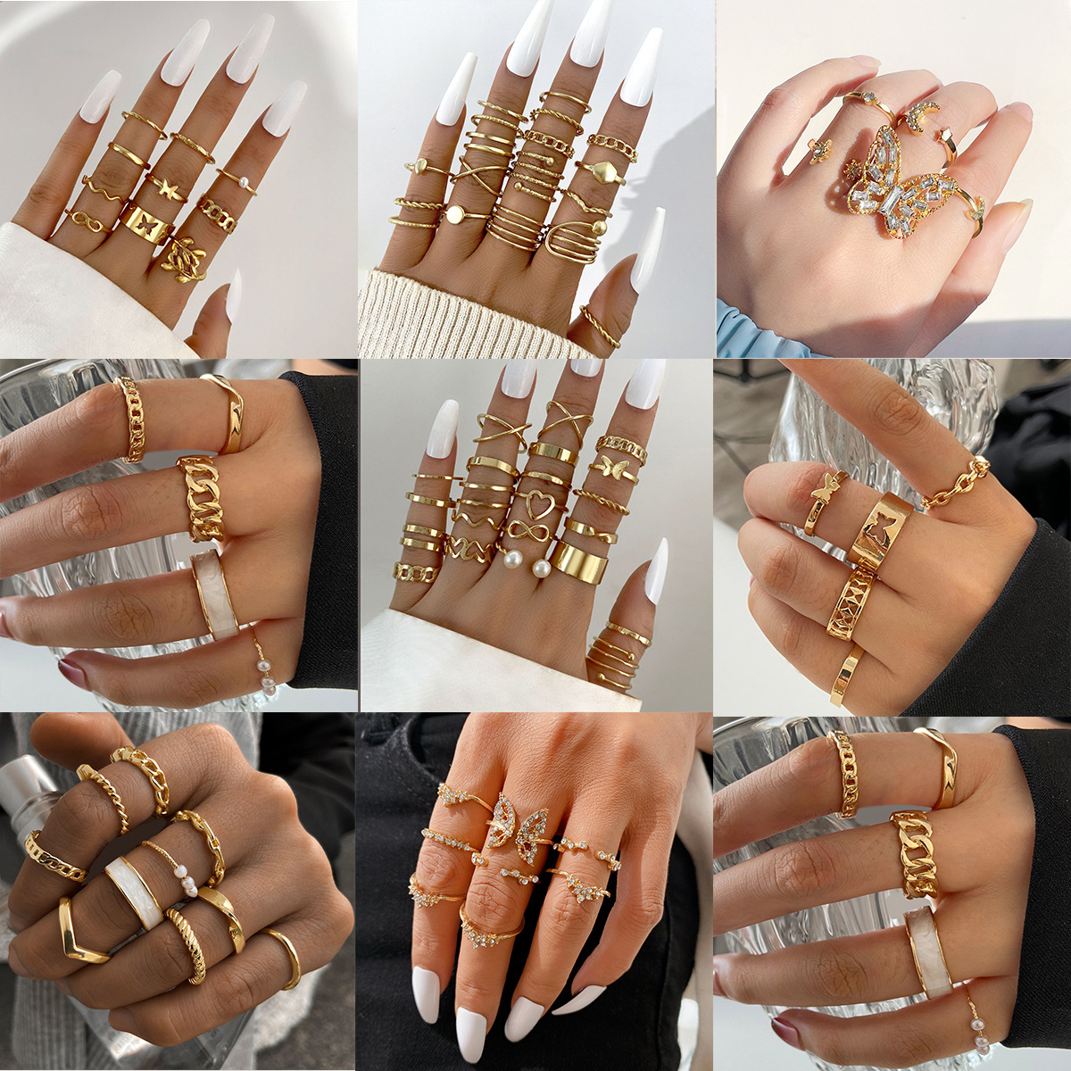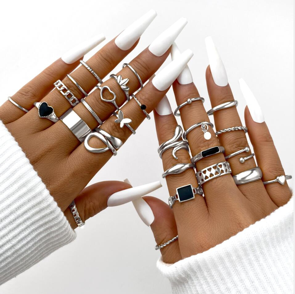 Главная страница > Набор из 22 персонализированных готических колец с множеством соединений, популярных за рубежом, с ажурным сердечком и геометрическим дизайном.