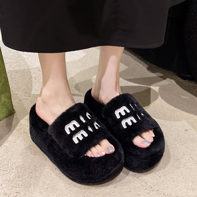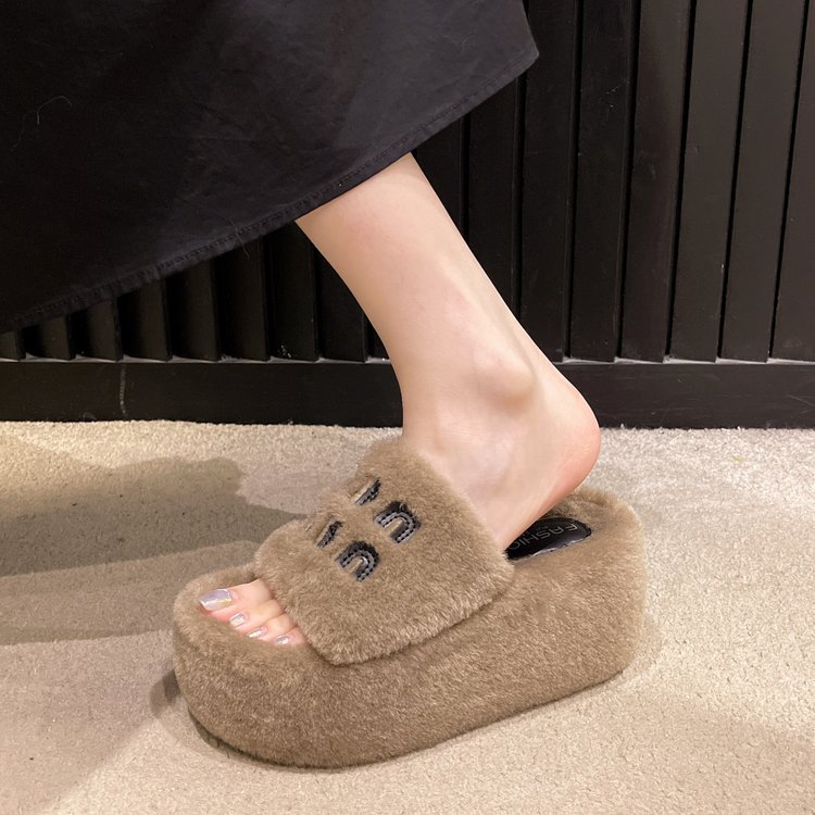 Главная страница > Осенне-зимние суперпопулярные бархатные модные тапочки на толстой подошве для женщин, которые можно носить на улице, пушистые тапочки на высоком каблуке на небольшой платформе.