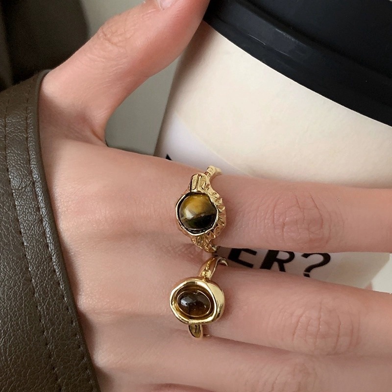 Открытое кольцо с камнем тигрового глаза и каплей воды