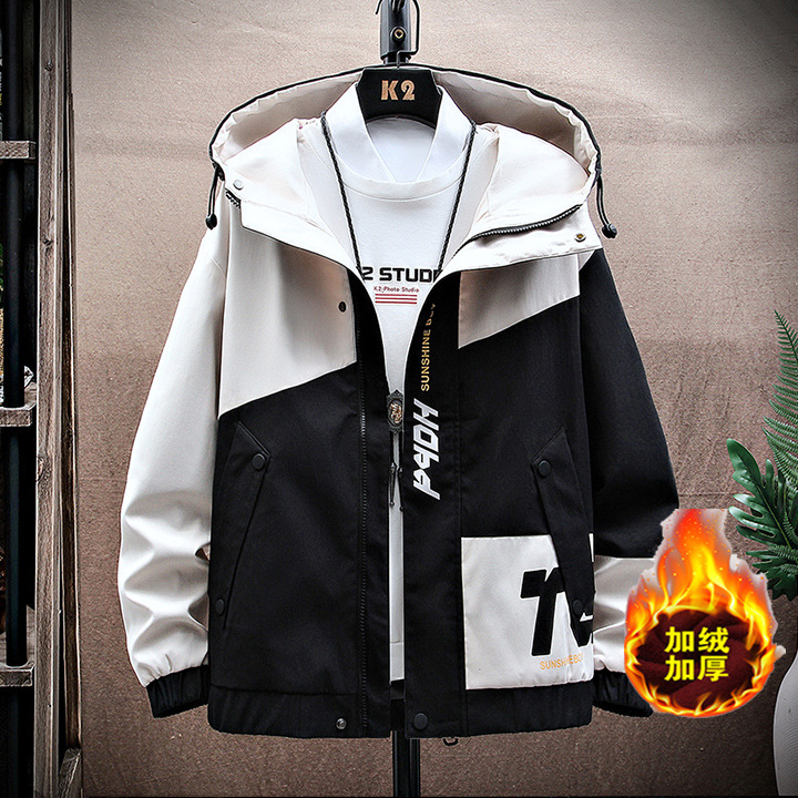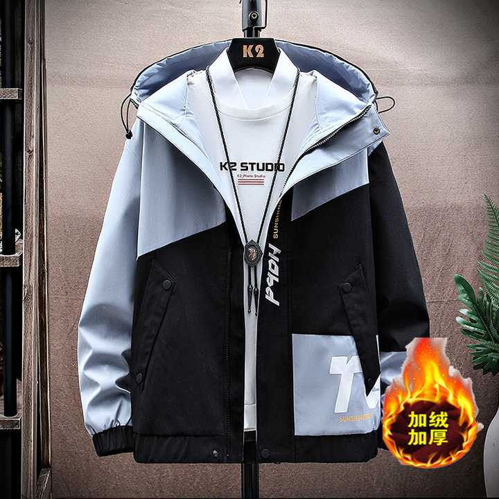 Главная страница > Очень большой размер, модная Толстая куртка больших размеров, Мужская весенне-осенне-зимняя свободная универсальная повседневная мужская Толстая Рабочая куртка с капюшоном