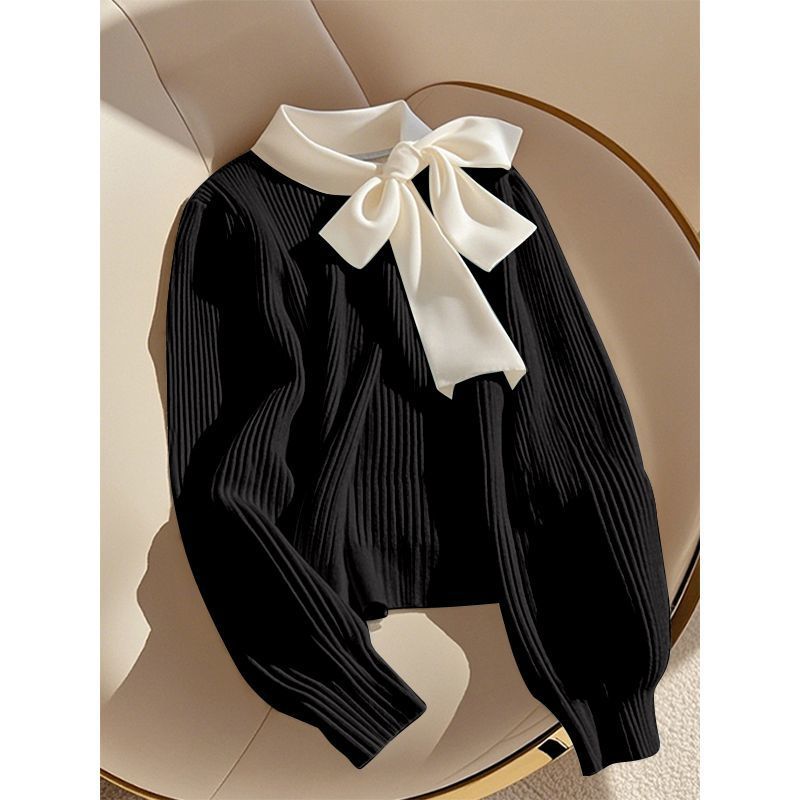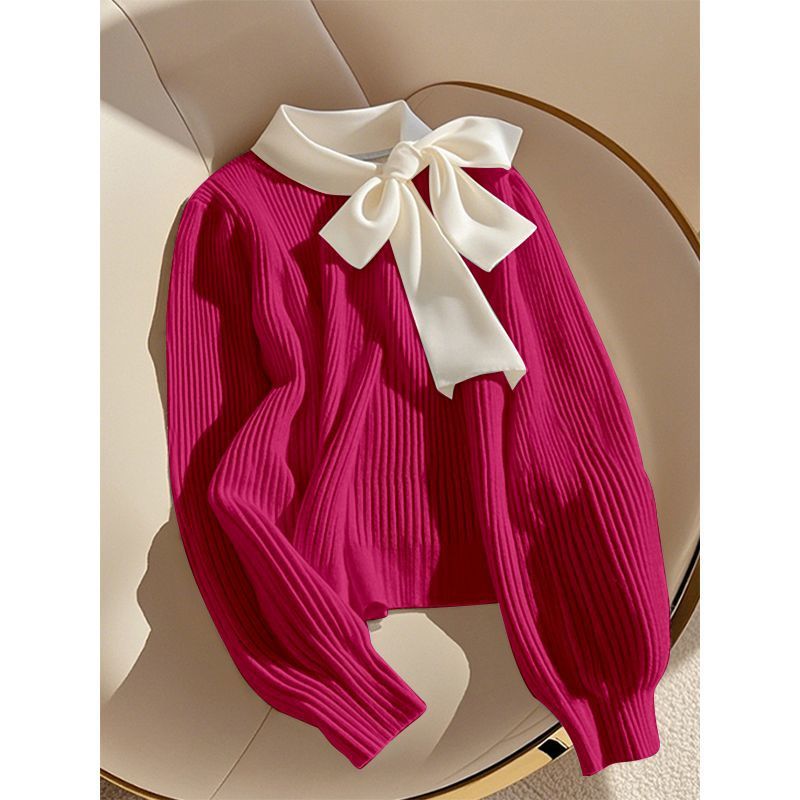 Главная страница > Осень и зима 2025 выглядит хорошо ленивый ветер с длинными рукавами рыхлый пуловер синий тонкий бант шерстистый свитер топ женский