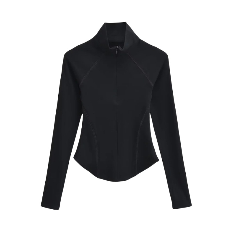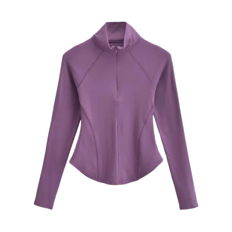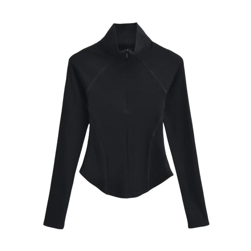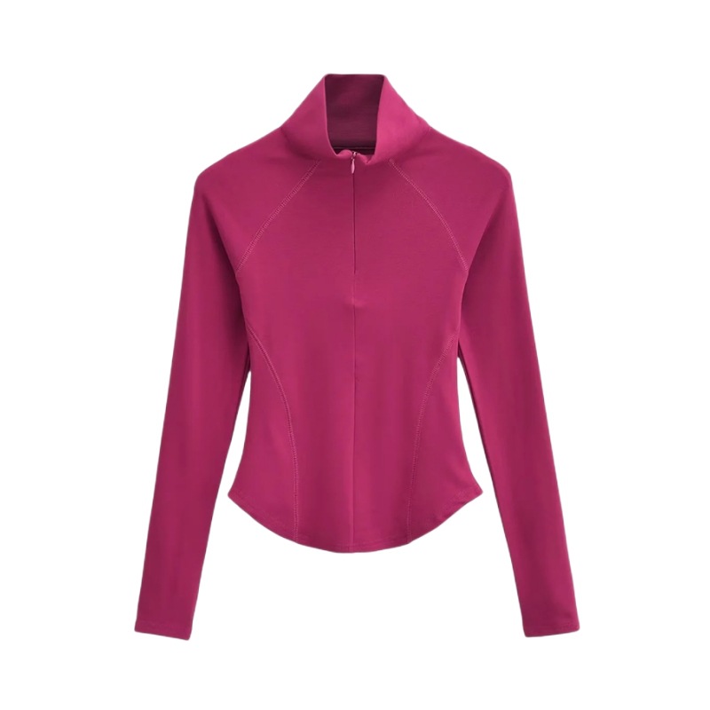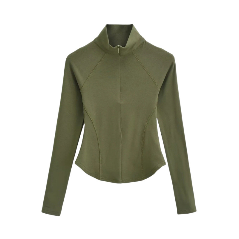 Главная страница > Осенне-зимняя футболка с высоким воротником и короткой молнией на флисовой подкладке Верхняя одежда Сплошной цвет Изогнутый подол Тонкий спортивный топ для йоги и фитнеса для женщин
