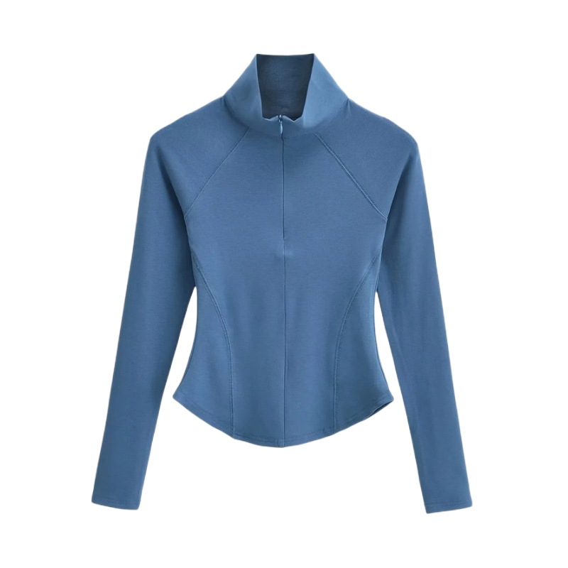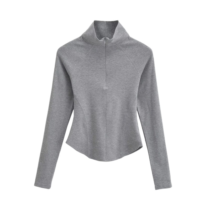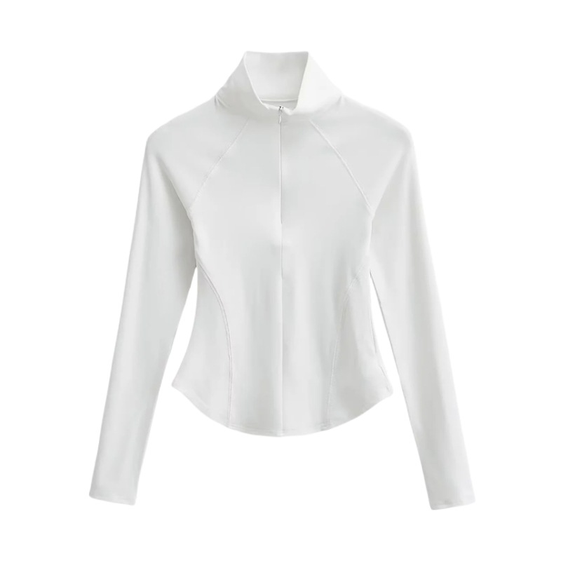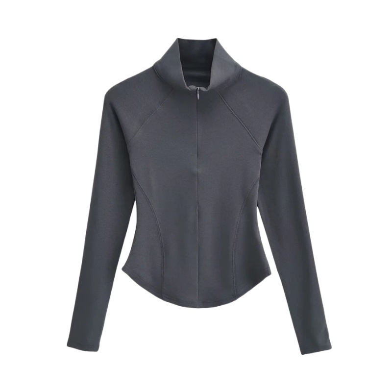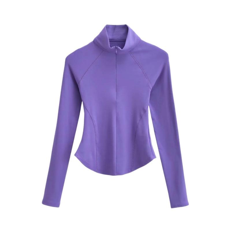 Главная страница > Осенне-зимняя футболка с высоким воротником и короткой молнией на флисовой подкладке Верхняя одежда Сплошной цвет Изогнутый подол Тонкий спортивный топ для йоги и фитнеса для женщин