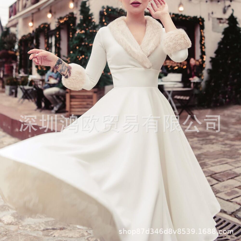 Главная страница > Европейский и американский стиль трансграничной внешней торговли 2024 зимняя мода с длинными рукавами шерстяной воротник сексуальный с низким вырезом стройный темперамент рождественское платье