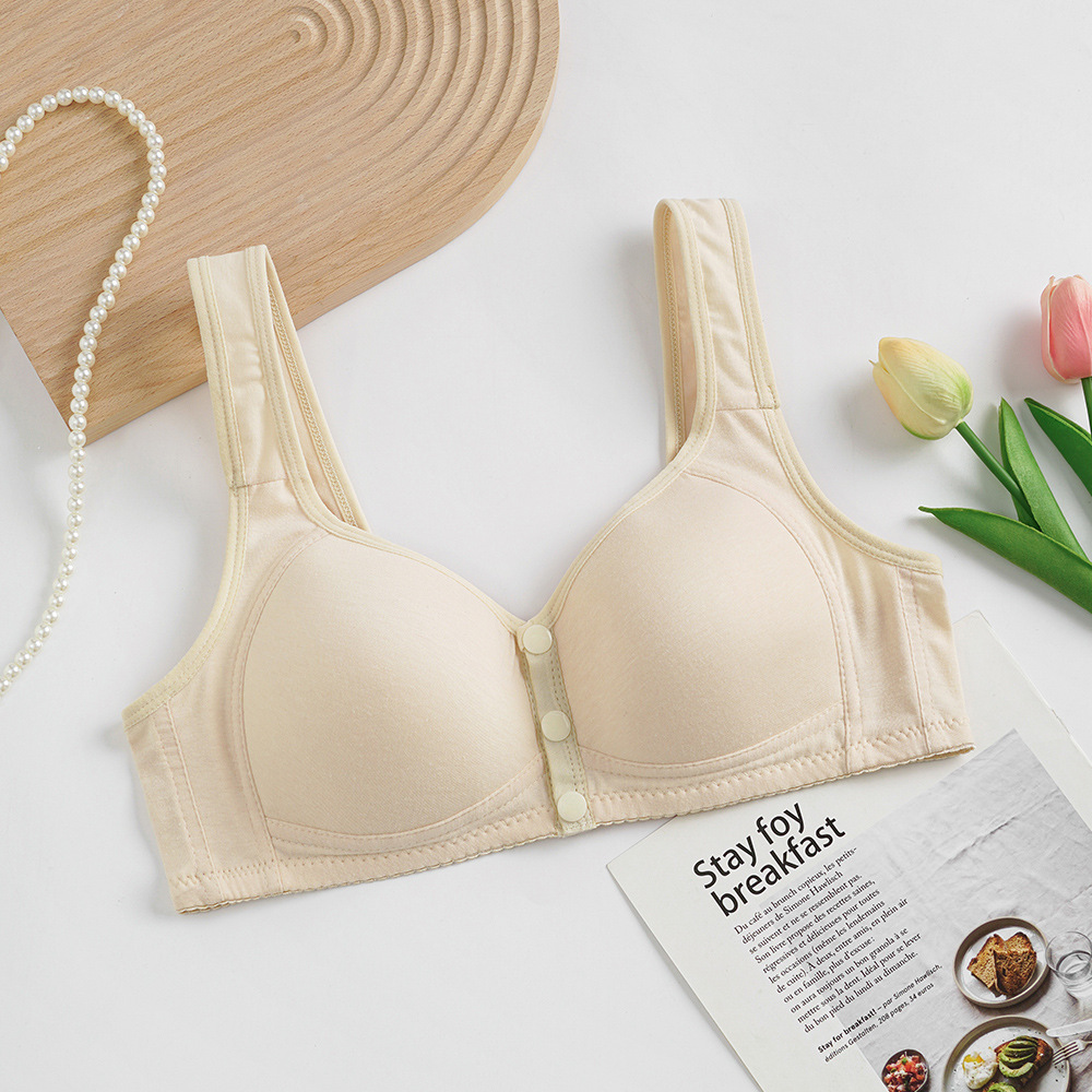 2024 новый стиль большой размер без стального круга дамы мягкий хлопок старик с фиксированной чашкой бюстгальтер с гладкой передней застежкой нижнее белье