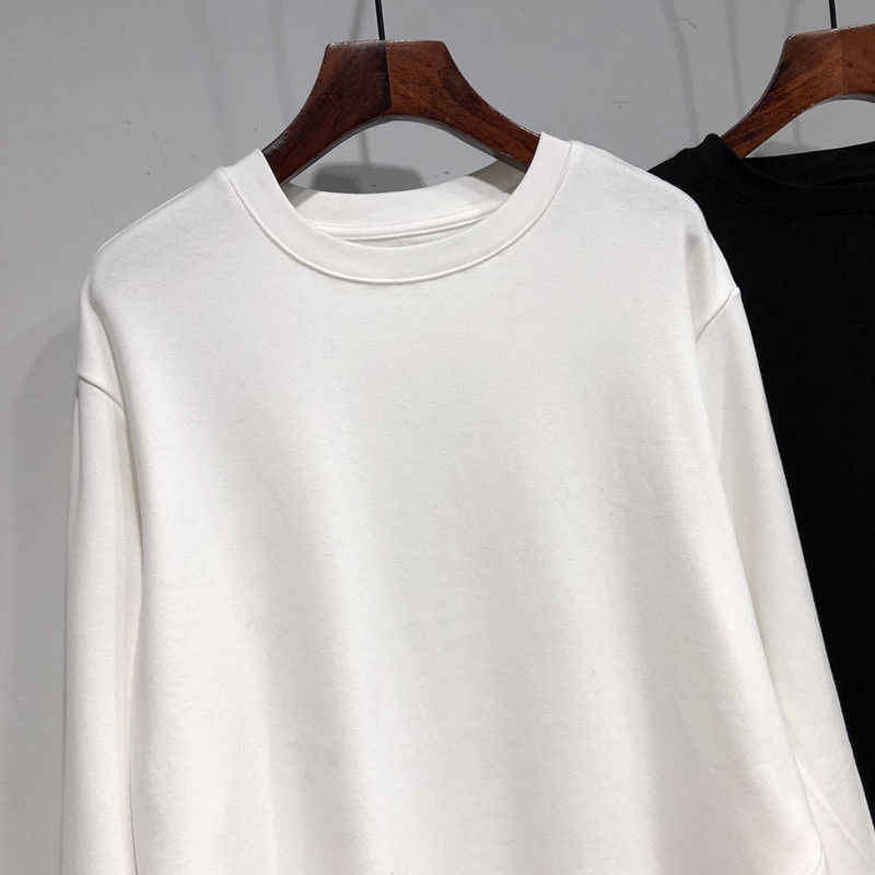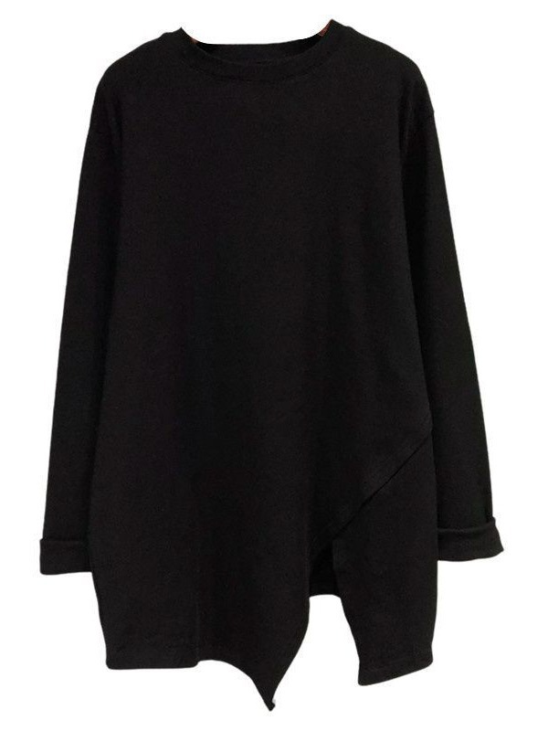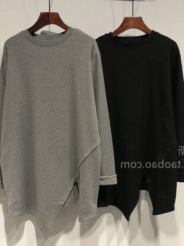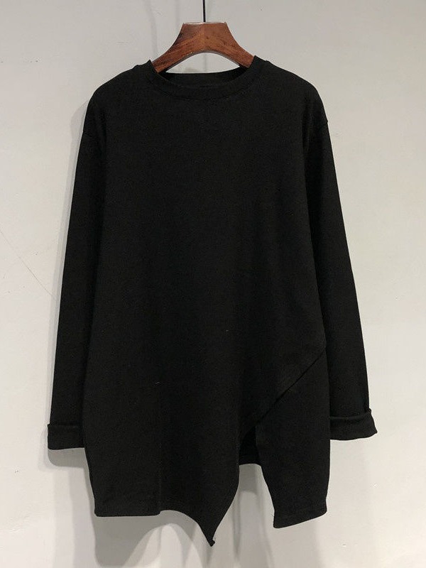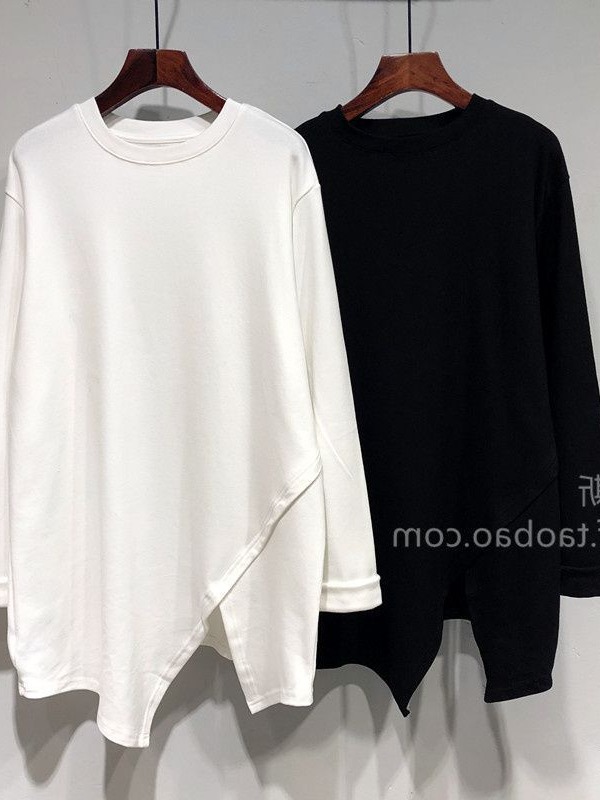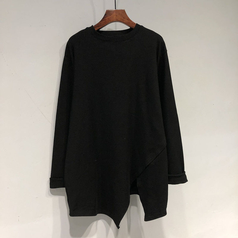 Главная страница > Осенне-зимняя свободная футболка с длинным рукавом больших размеров 300 кг, Женская Корейская версия дизайна Джокера, ощущение подола, нерегулярный топ с разрезом