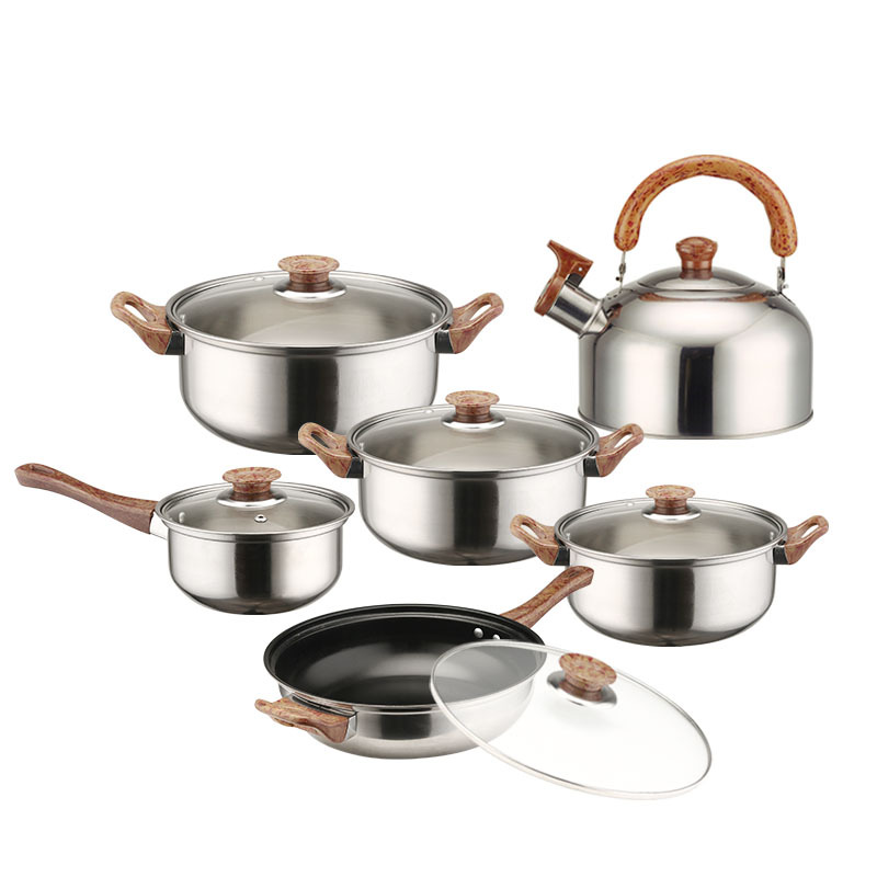 Главная страница > Трансграничный специализированный для кастрюль из нержавеющей стали с деревянной ручкой с черными ручками набор кастрюль с чайником кастрюля с молоком кастрюля сковорода сковорода 12/18PCS