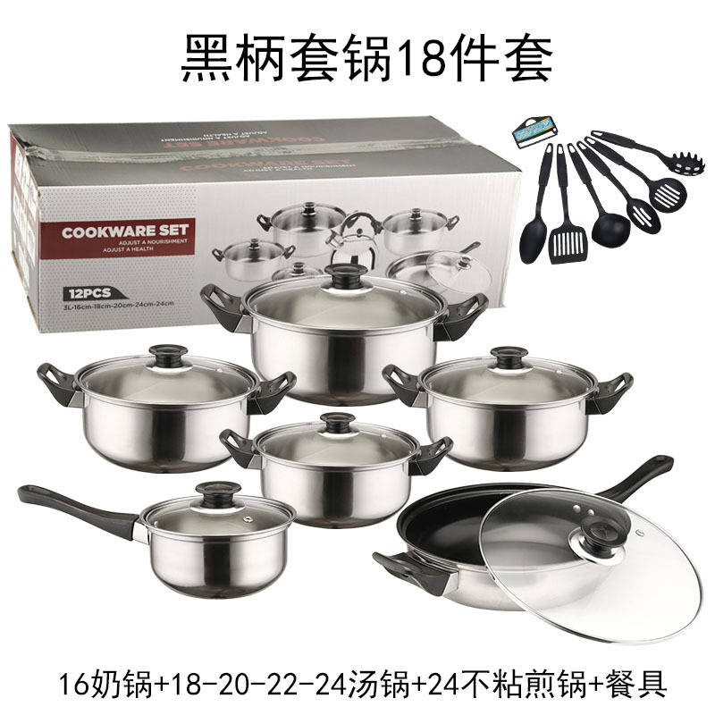 Черная ручка типа А: 18 шт. 16 горшок для молока - суповая кастрюля 18-20-22-24+24 жареная нержавеющая сталь