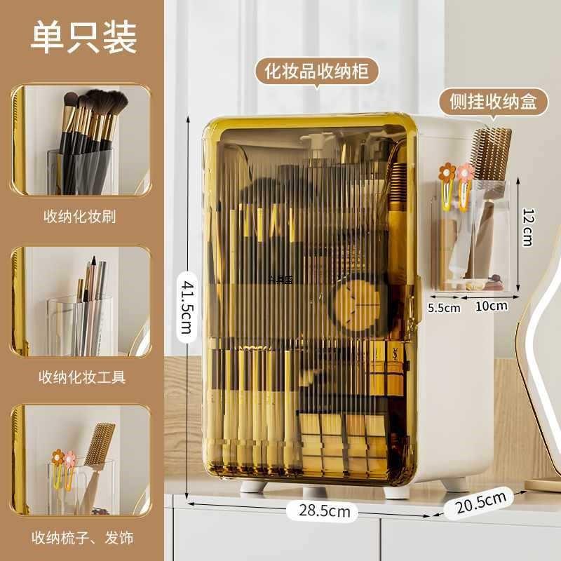 [Косметический набор из трех предметов] Косметический шкаф 2-го поколения с боковым держателем для расчески + высокопрозрачное отделение для кистей для макияжа
